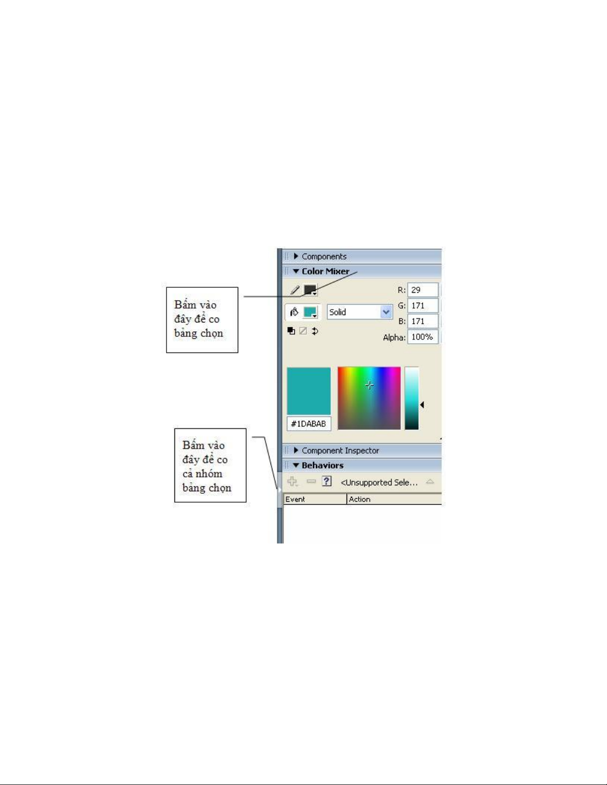 khác nhau. Chẳng hạn, hình 1 là bảng chọn Color Mixer, cho phép chọn màu