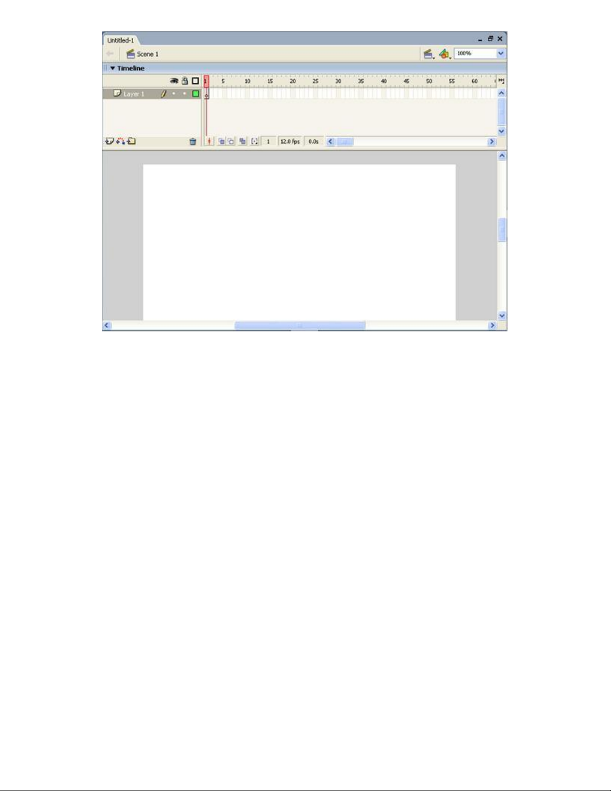 Bạn thấy ở giữa cửa sổ Flash có một khung trống trơn, màu trắng (hình 3). Đó