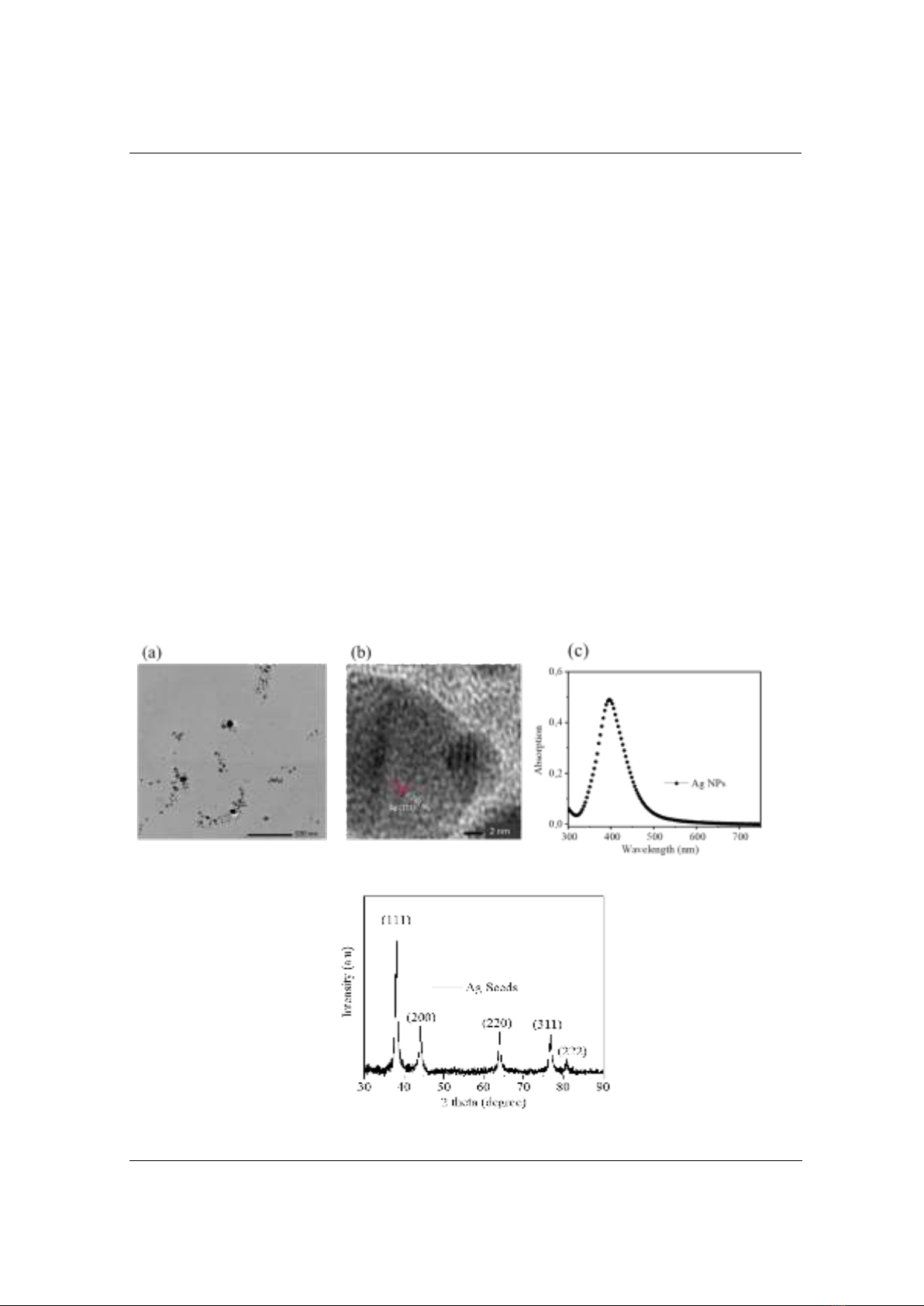 silver NPs (Figure 1c) shows the characteristic band at 399 nm. The morphology of Ag NPs was