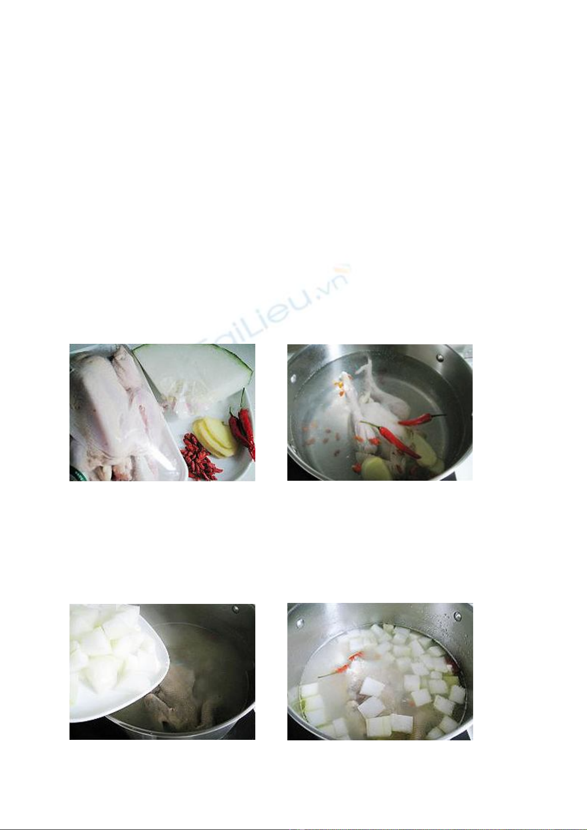 Gà rửa sạch, bí xanh gọt vỏ bỏ ruột rồi