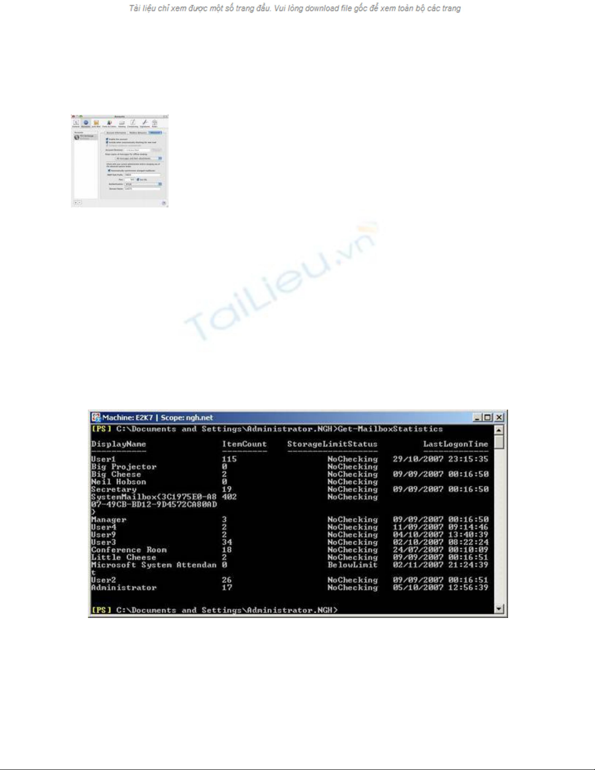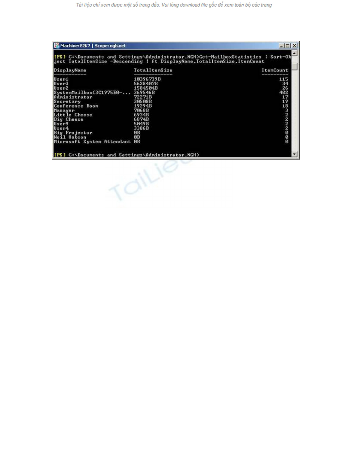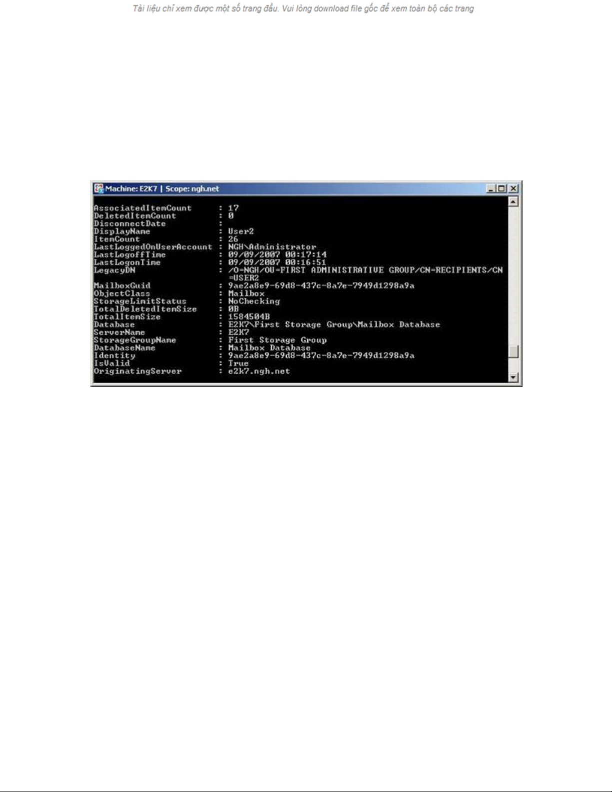 Cmdlet cơ bản nhất của Exchange Management Shell để sử dụng là Get-MailboxStatistics trên
