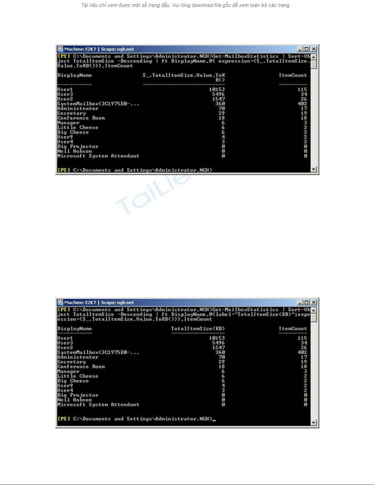 Exchange 2007. Khi đã biết được thuộc tính cần quan tâm TotalItemSize, chúng ta có thể thay