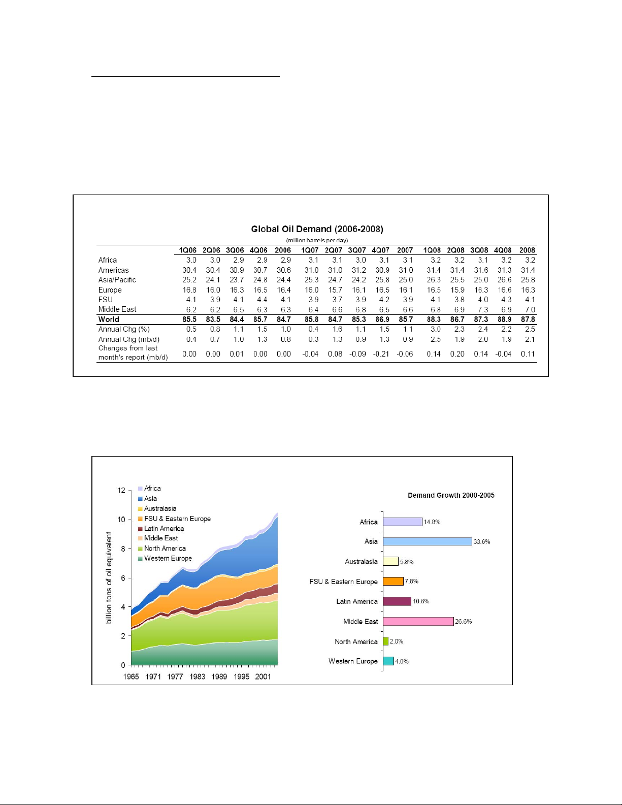 Bảng 1: Nhu cầu tiêu dùng dầu trên thế giới, giai đoạn 2006 – 2008