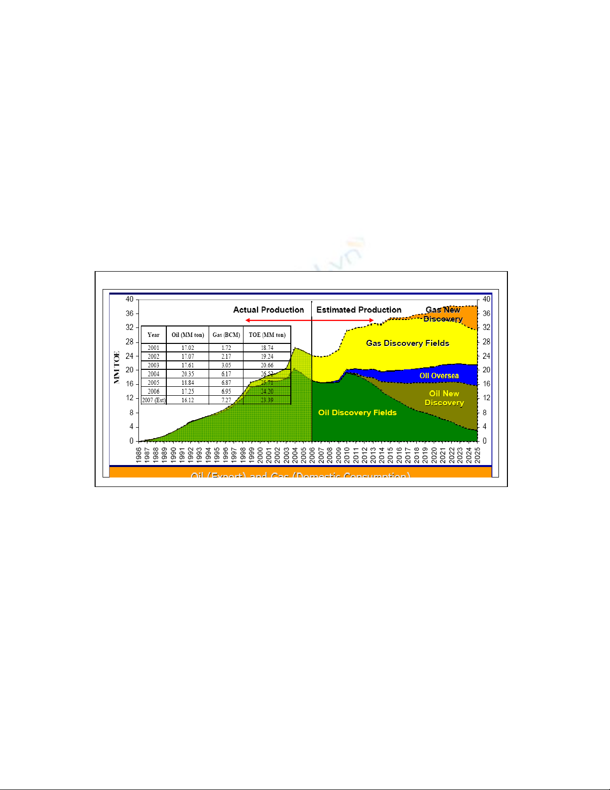 Hình 6: Sản xuất dầu lửa và khí đốt của Việt Nam