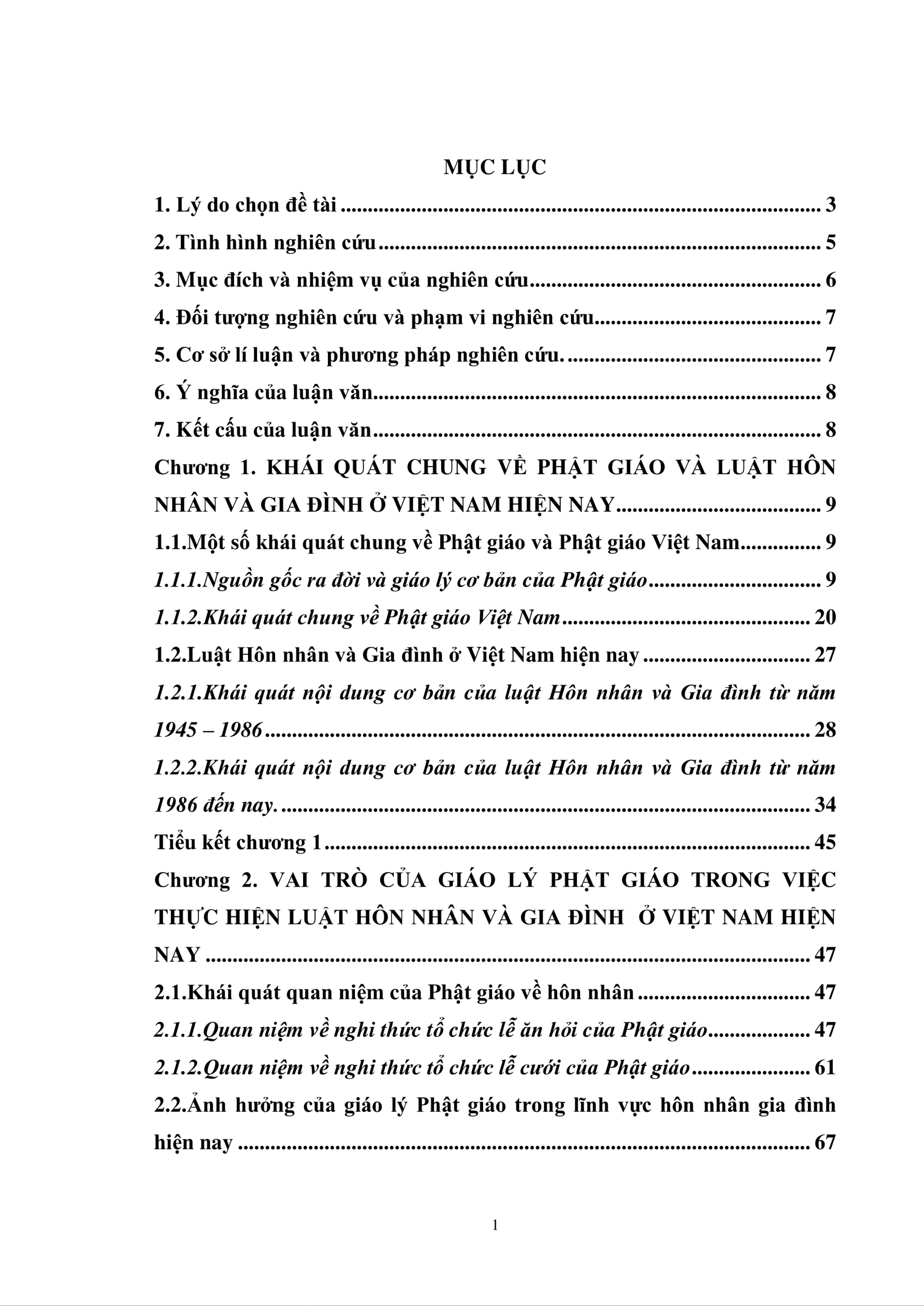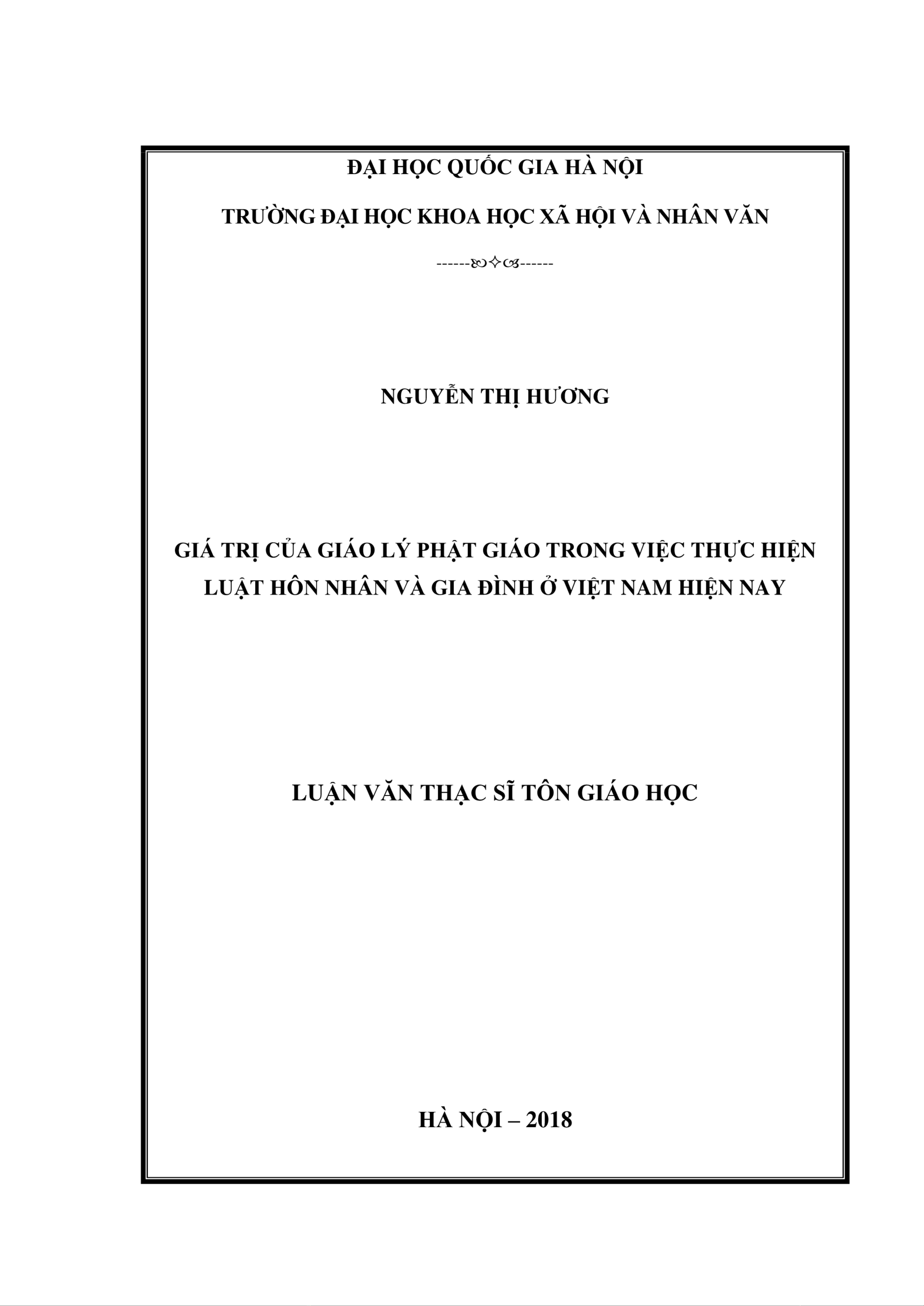 Luận văn Thạc sĩ Tôn giáo học: Giá trị của giáo lý Phật giáo trong việc thực hiện luật Hôn nhân và Gia đình Việt Nam hiện nay