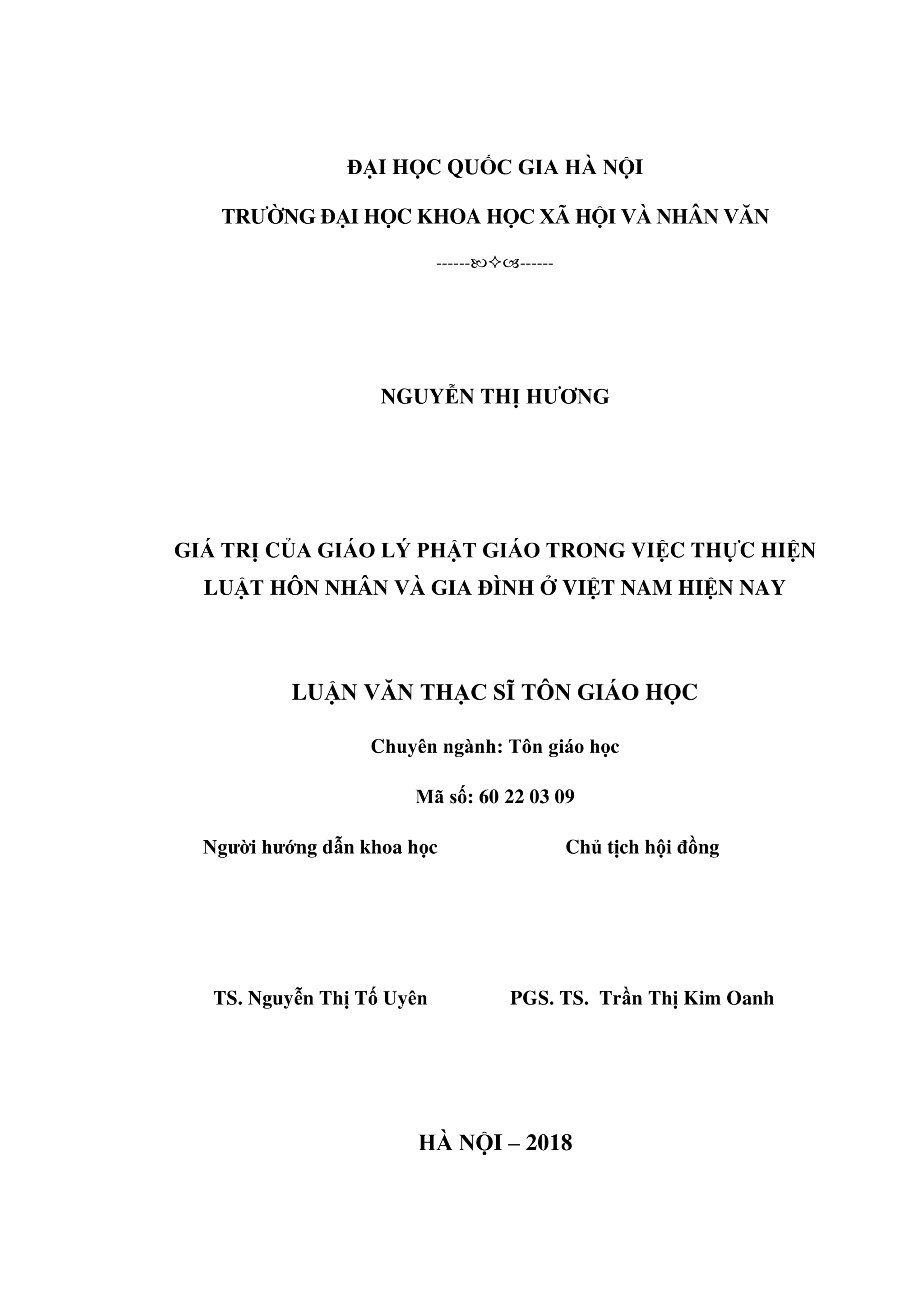 Tác động của Phật giáo đến giá trị đạo đức con người Việt Nam thông các phong tục truyền thống là vô cùng rõ nét, tiêu biểu như trong việc thực hiện luật Hôn nhân và Gia đình của người Việt. Luận văn góp phần làm sáng tỏ mối quan hệ giữa pháp luật và tôn giáo, cụ thể là Phật giáo. Bên cạnh đó, nghiên cứu sẽ mang đến một góc nhìn mới, từ những giáo lý mang đầy tính nhân văn của Phật giáo về hôn nhân và gia đình có sự tác động, ảnh hưởng trực tiếp đến việc người dân (những người Phật tử) thực hiện nghiêm chỉnh luật pháp nói chung và luật Hôn nhân và Gia đình Việt Nam nói riêng