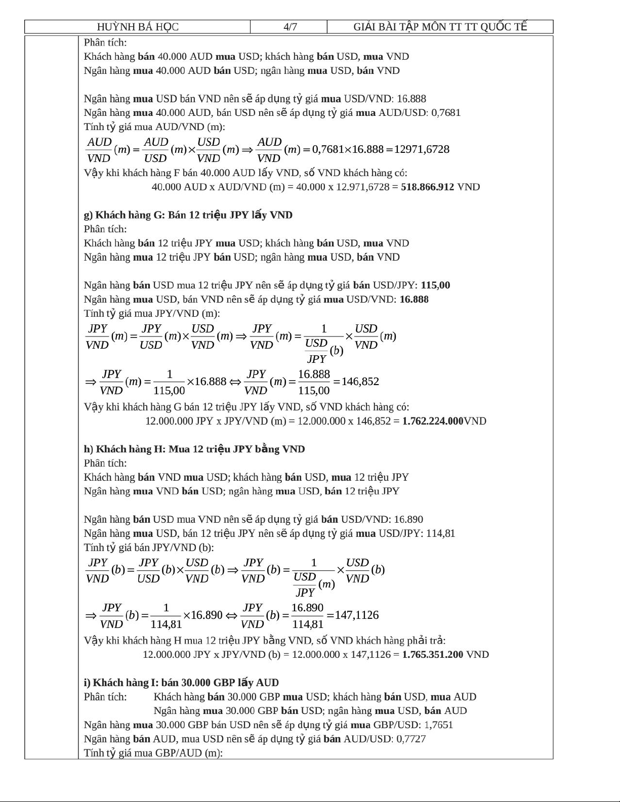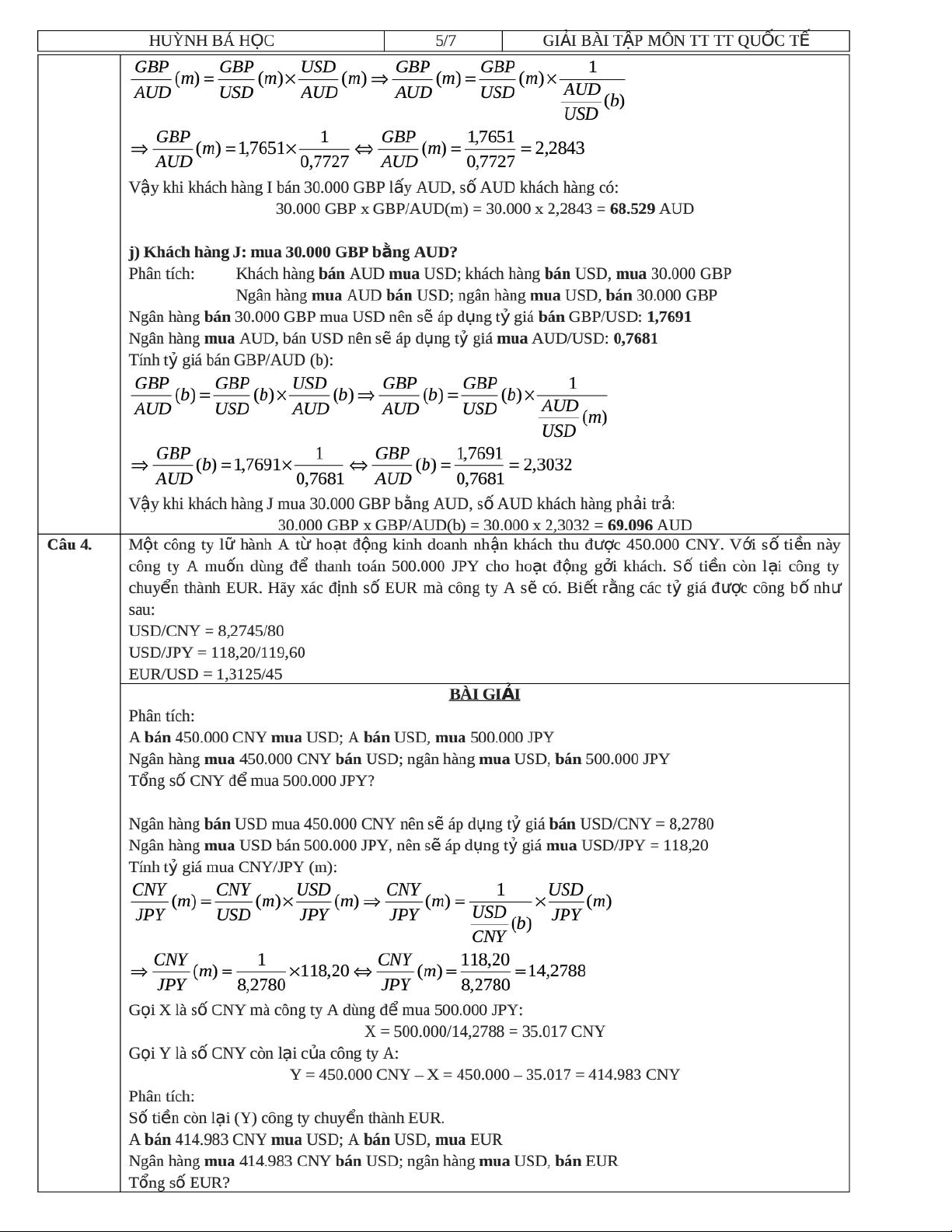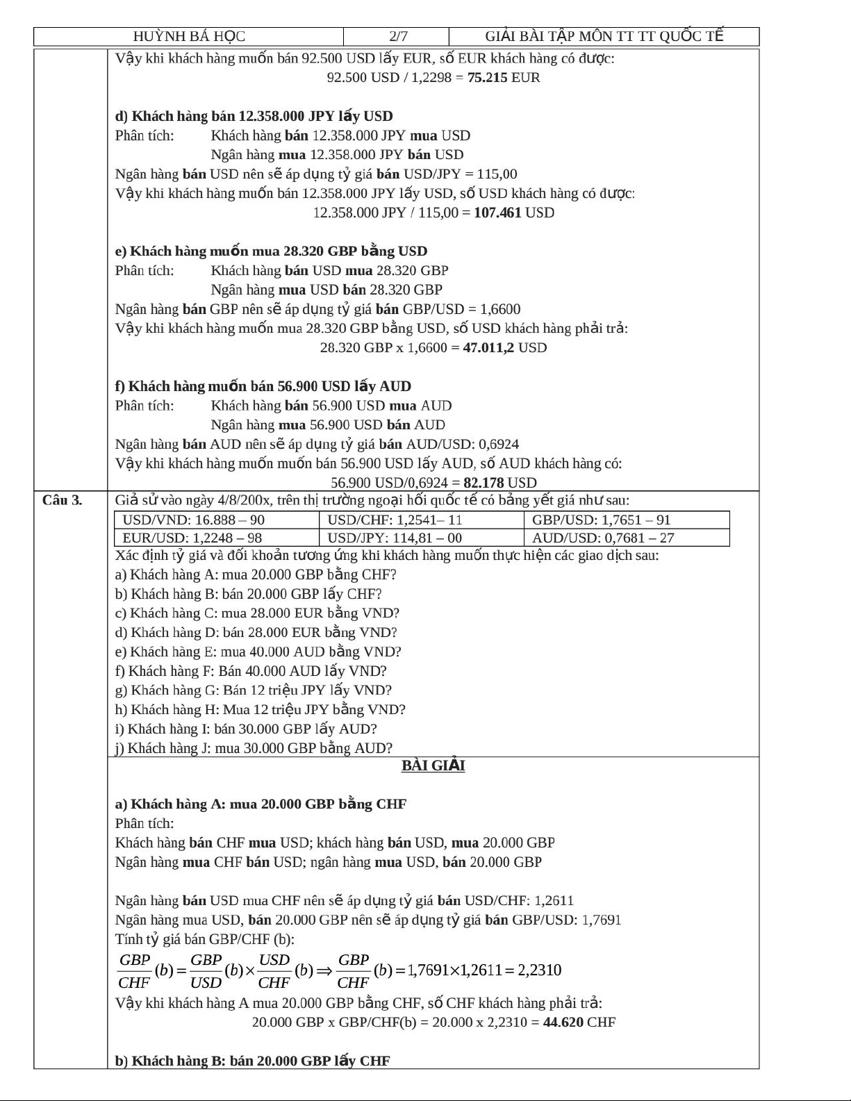 GIẢI BÀI TẬP MÔN TIỀN TỆ THANH TOÁN QUỐC TẾ