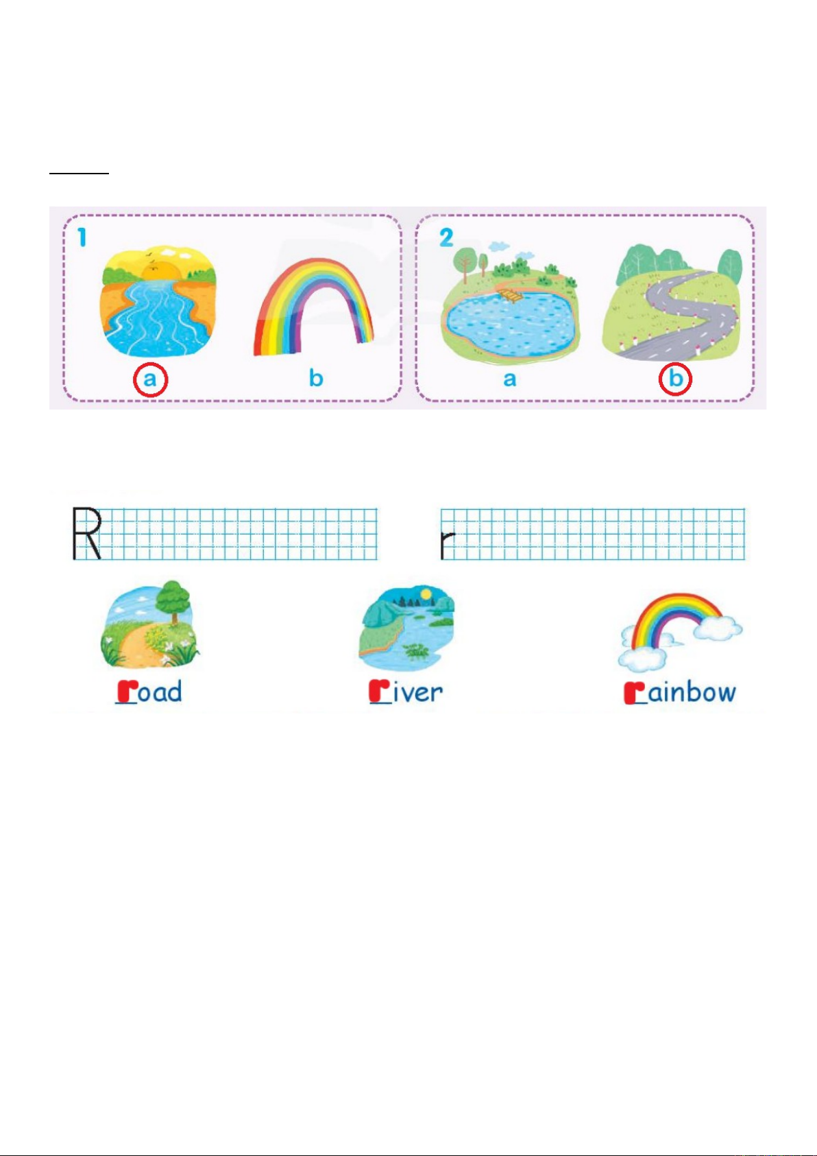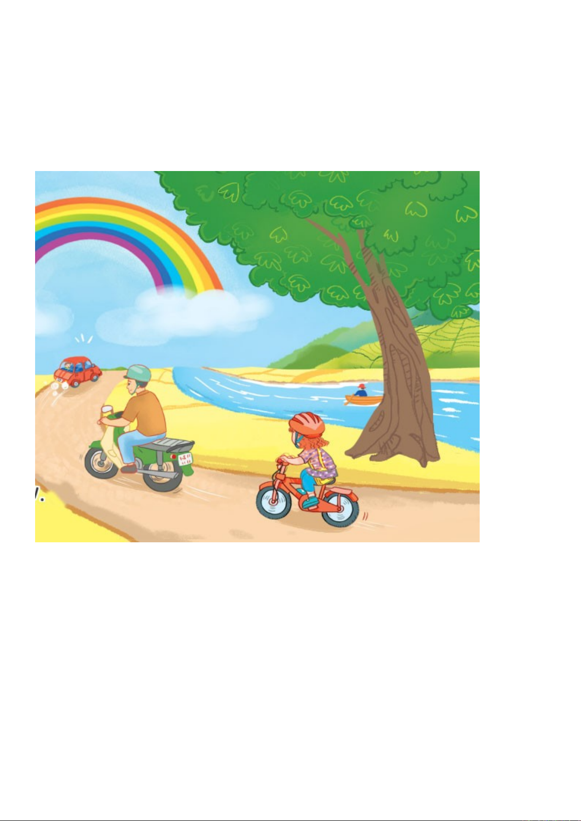 Bài học 1 của Unit 4: In the Countryside trong chương trình Tiếng Anh lớp 2 Global Success được xây dựng với mục tiêu chính là giới thiệu và củng cố nhóm từ vựng cơ bản miêu tả các yếu tố tự nhiên trong cảnh quan nông thôn. Cụ thể, tài liệu tập trung vào ba từ khóa chính: "road" (con đường), "river" (dòng sông), và "rainbow" (cầu vồng), thông qua chuỗi các hoạt động học tập đa dạng. Phương pháp tiếp cận bao gồm nghe và hát theo ("Listen and chant"), giúp học sinh làm quen với ngữ âm và nhịp điệu của từ mới. Sau đó, hoạt động nghe và khoanh tròn ("Listen and circle") được sử dụng để kiểm tra khả năng nhận diện từ vựng qua âm thanh, tăng cường kỹ năng nghe hiểu. Cuối cùng, phần nhìn và viết ("Look and write") khuyến khích học sinh thực hành viết các từ đã học, củng cố cả kỹ năng viết và ghi nhớ mặt chữ. Giá trị ứng dụng của bài học này nằm ở việc xây dựng một nền tảng từ vựng vững chắc, giúp học sinh mô tả thế giới xung quanh một cách đơn giản bằng tiếng Anh. Hơn nữa, việc lồng ghép hình ảnh minh họa sinh động và các bài tập tương tác giúp quá trình học trở nên thú vị và hiệu quả hơn, thúc đẩy sự hứng thú của trẻ em đối với việc học tiếng Anh từ sớm. Tài liệu này hàm ý rằng việc học ngôn ngữ cần được tiếp cận một cách toàn diện, kết hợp nghe, nói, đọc, viết và sử dụng hình ảnh trực quan để tối ưu hóa khả năng tiếp thu của học sinh tiểu học.