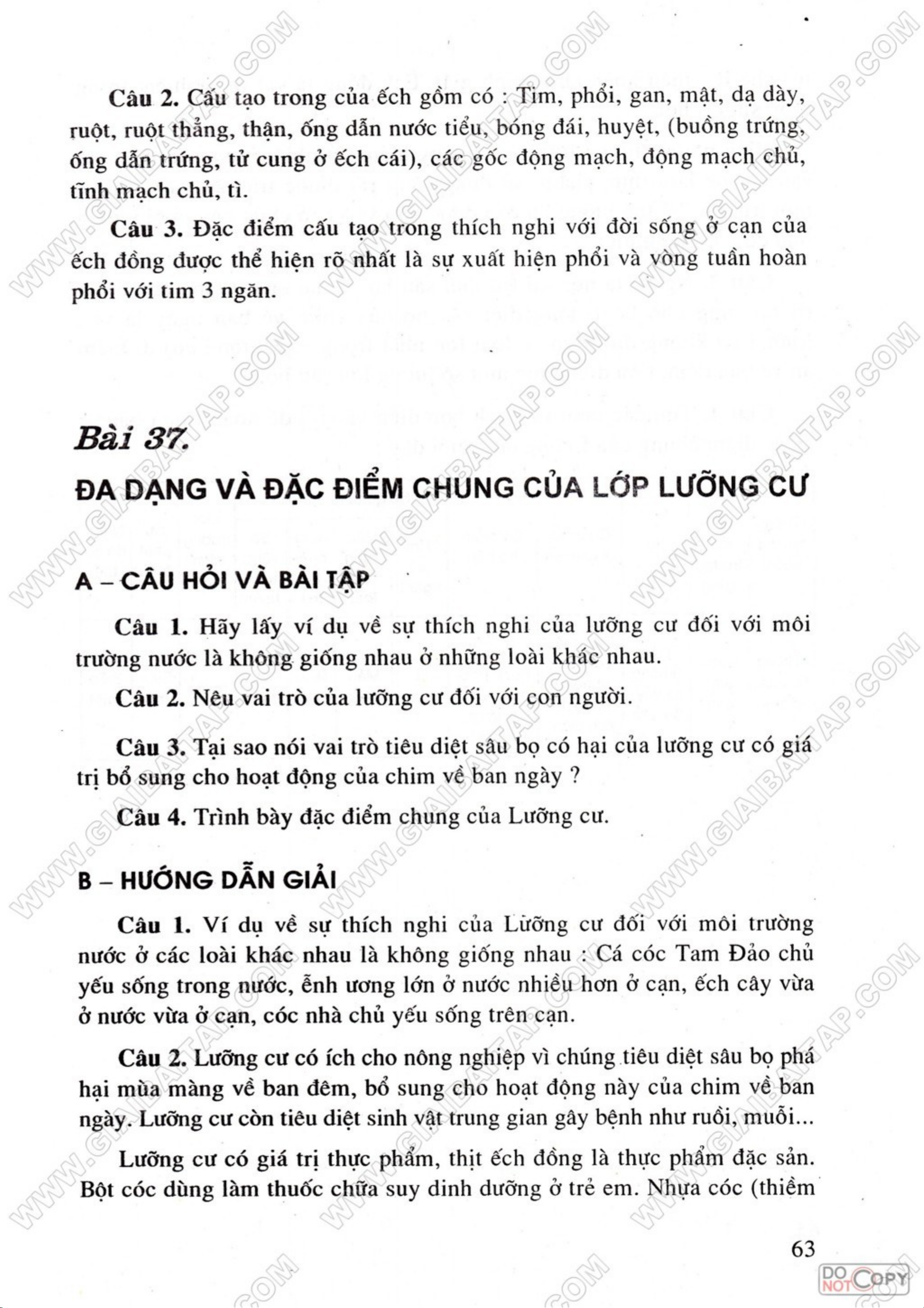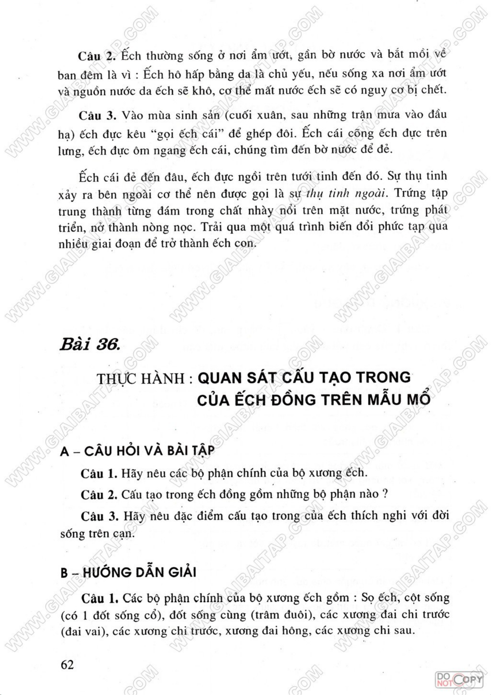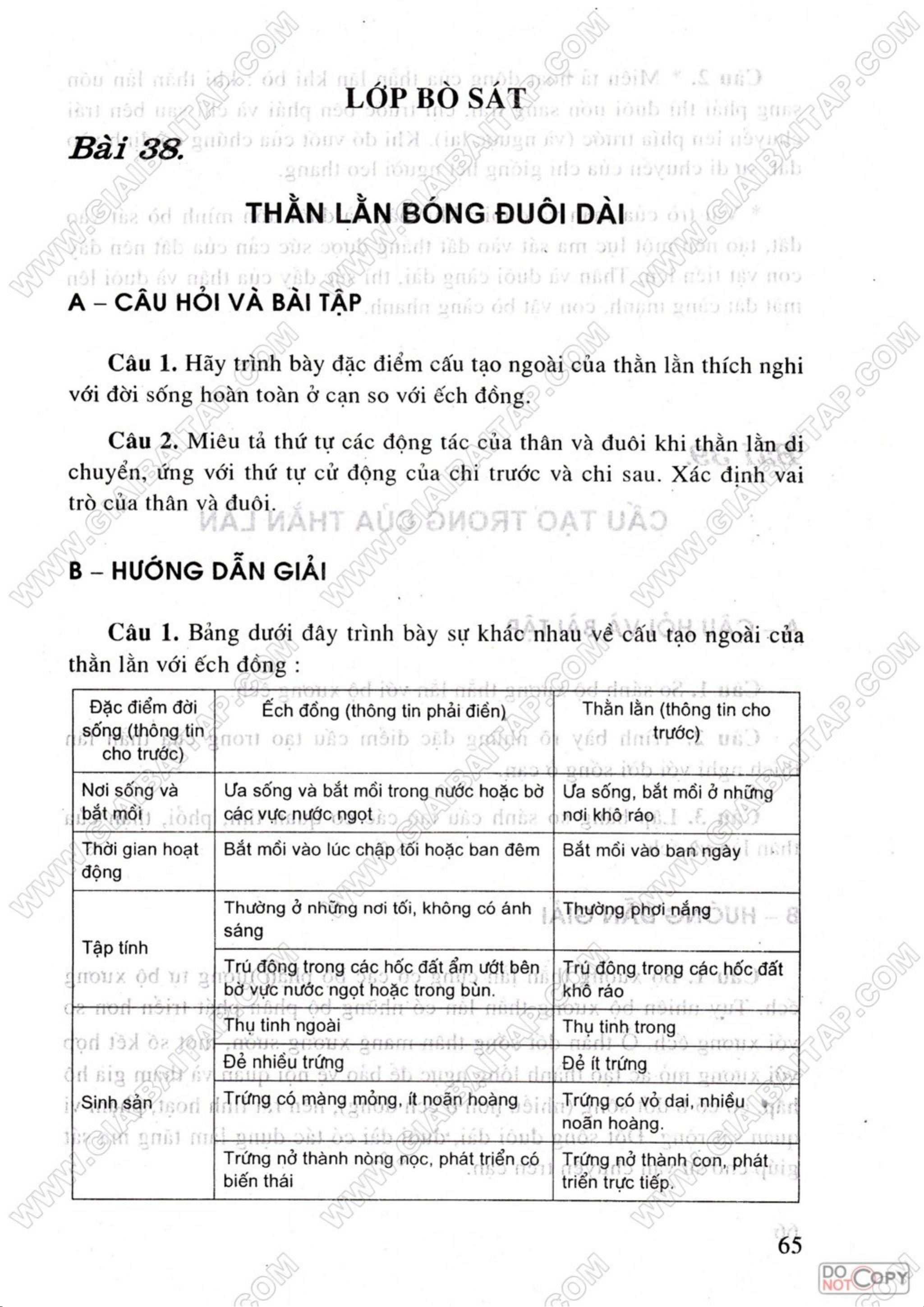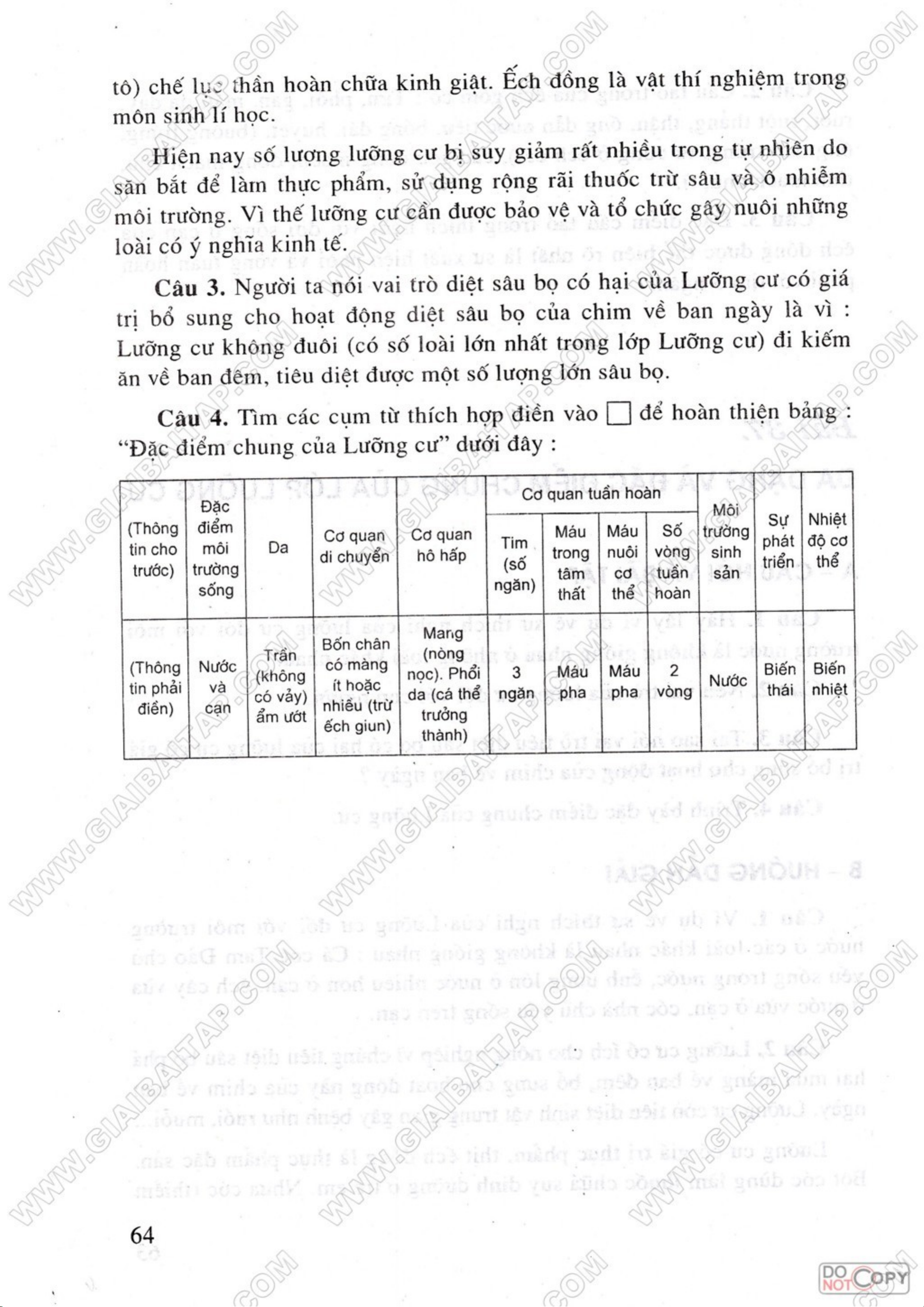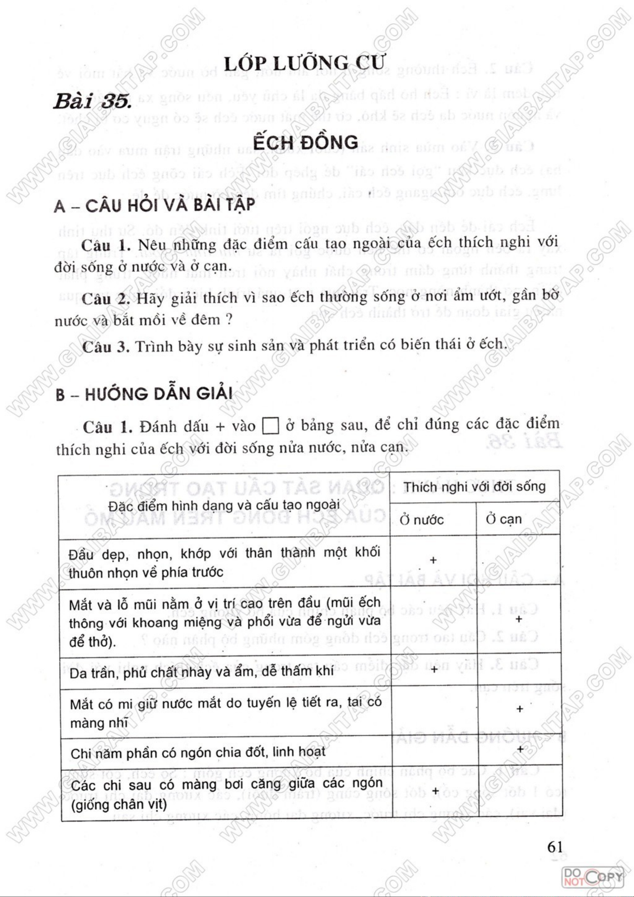 Giải bài tập Sinh học 7 - Chương 6 - Lớp lưỡng cư