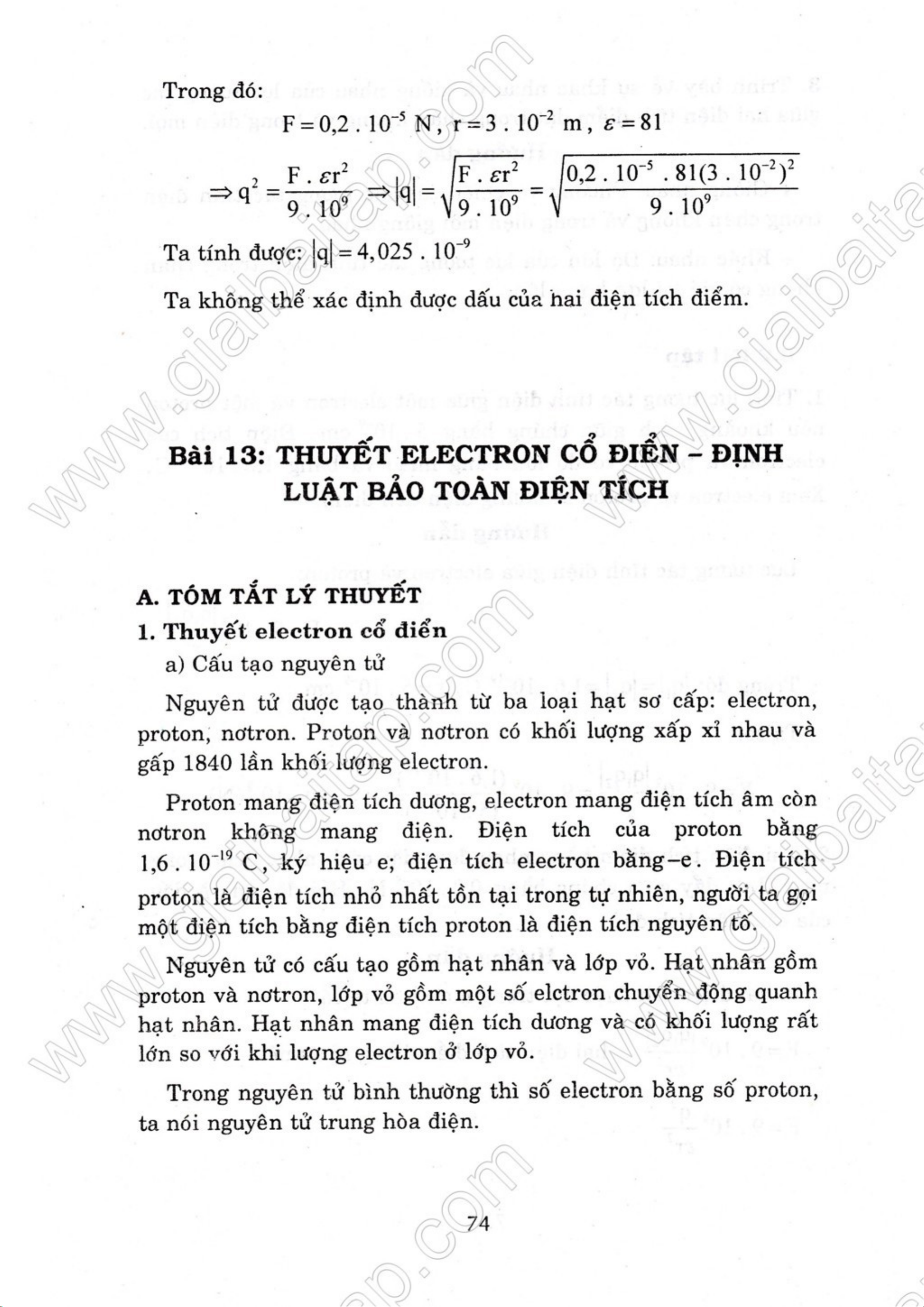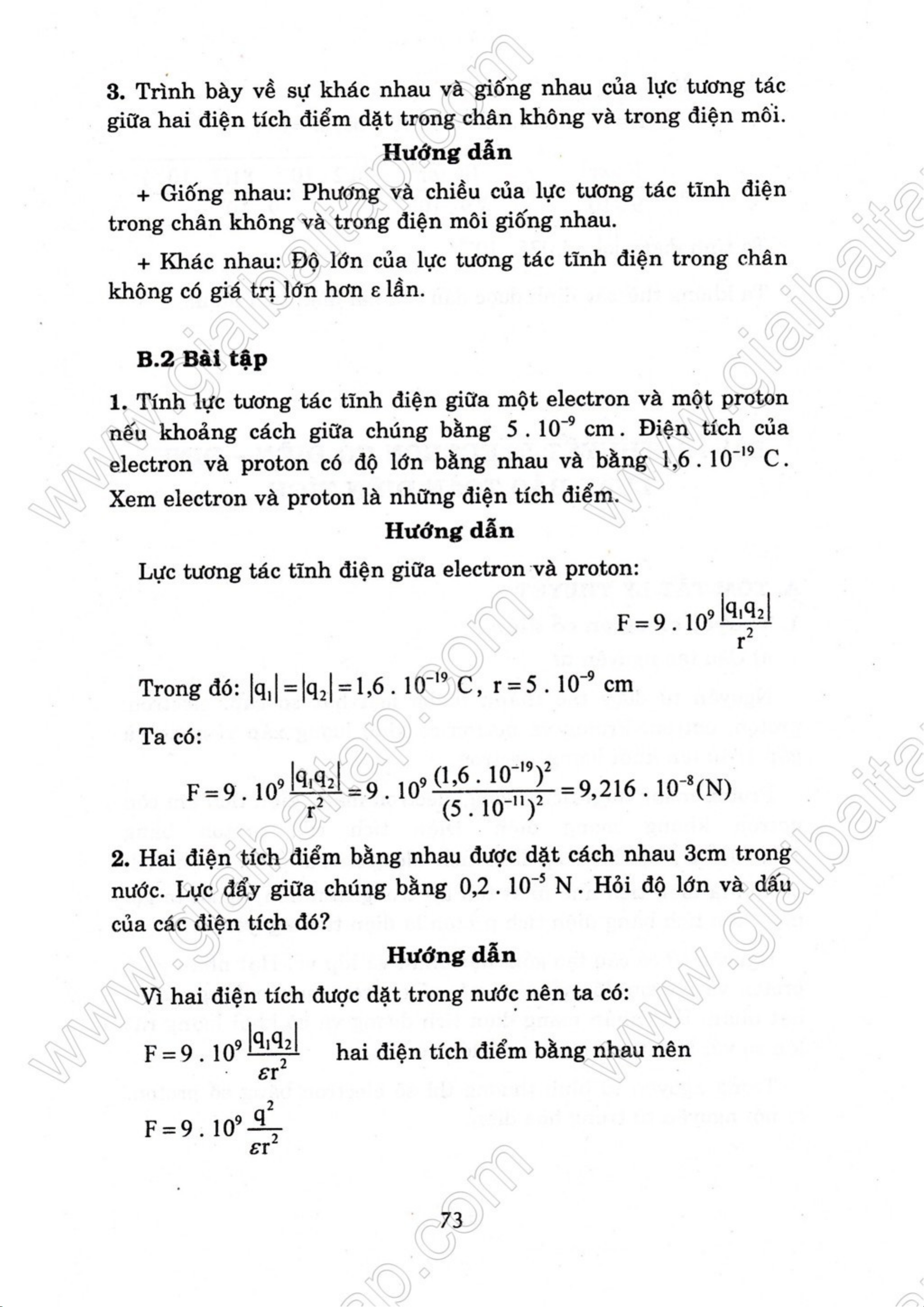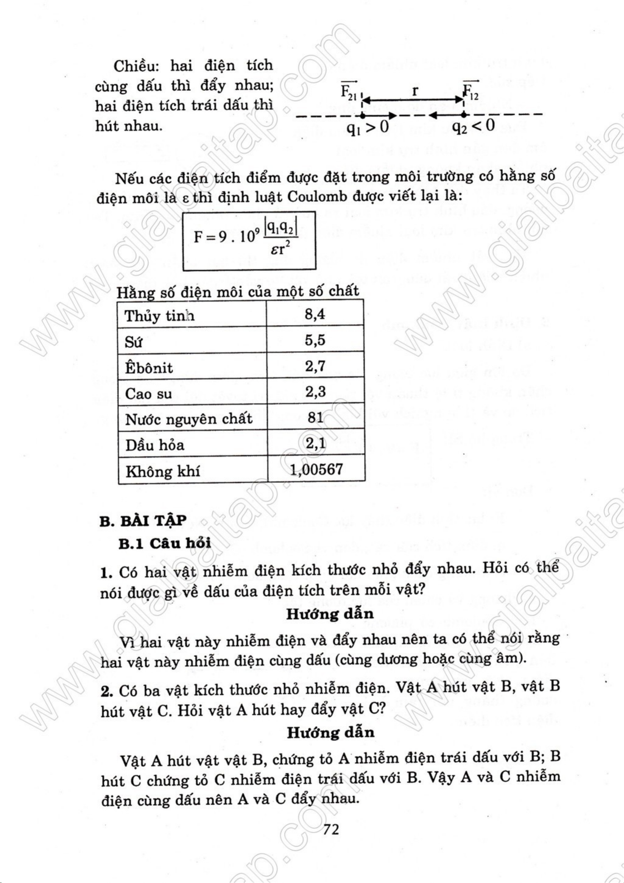 Giải bài tập Vật lý 11 cơ bản - Chương 3 - Cơ sở của tĩnh điện học