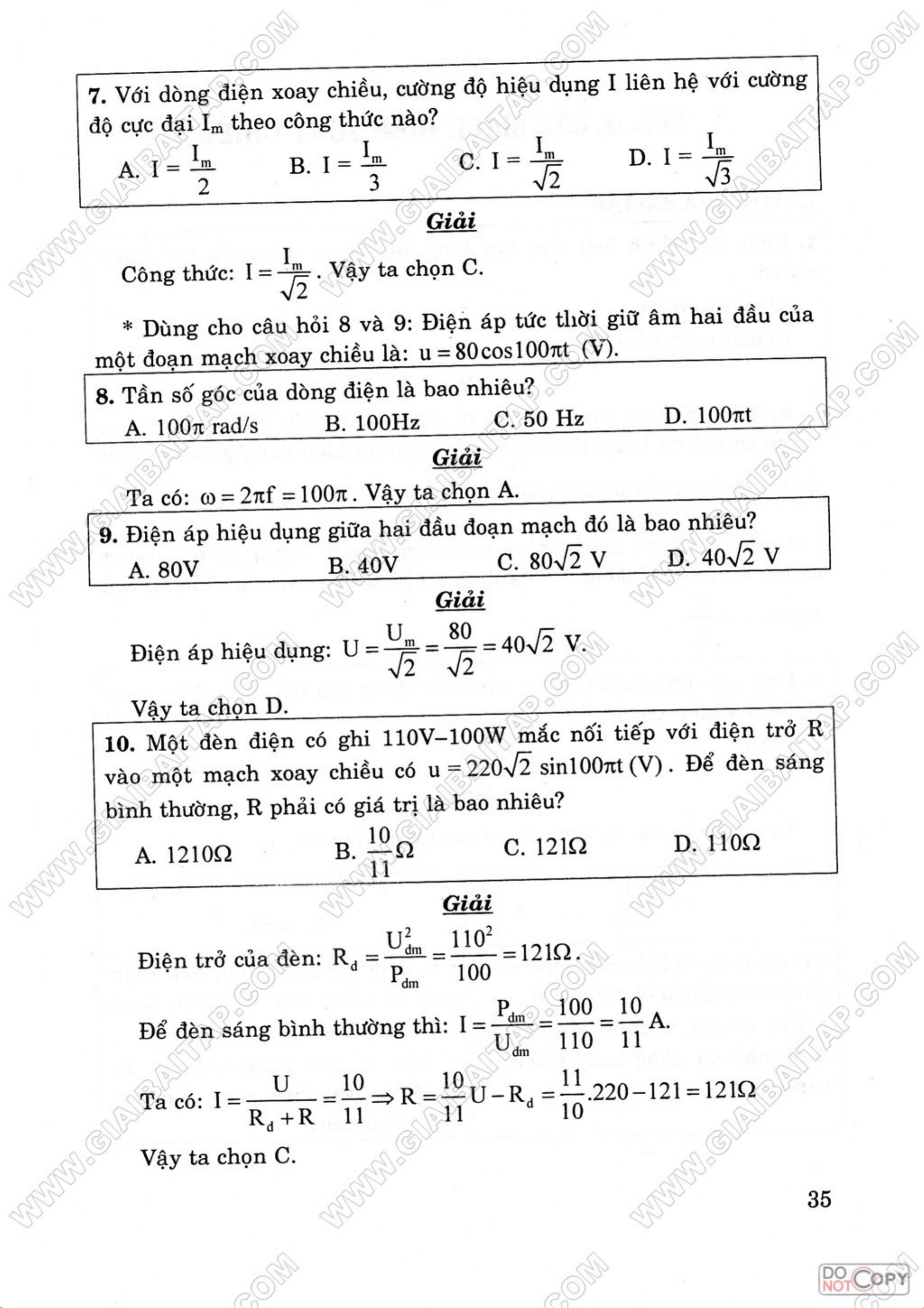 Tài liệu tham khảo bài tập Vật lý 12 cơ bản - Chương 3: Dòng điện xoay chiều có bài giải kèm theo giúp học sinh ôn tập kiến thức, rèn luyện kỹ năng làm bài tập đạt kết quả cao trong môn Vật lý 12 này nhé.