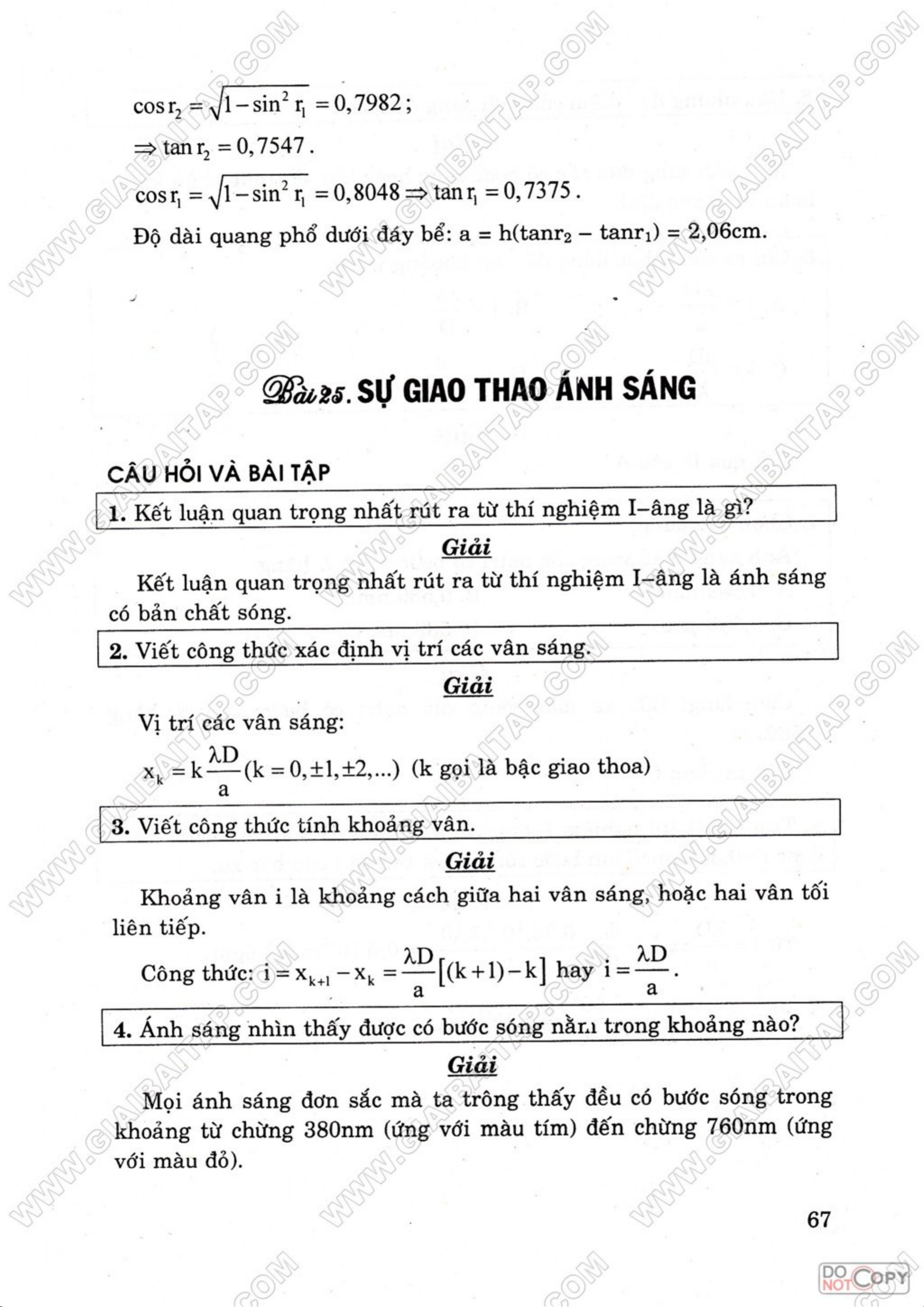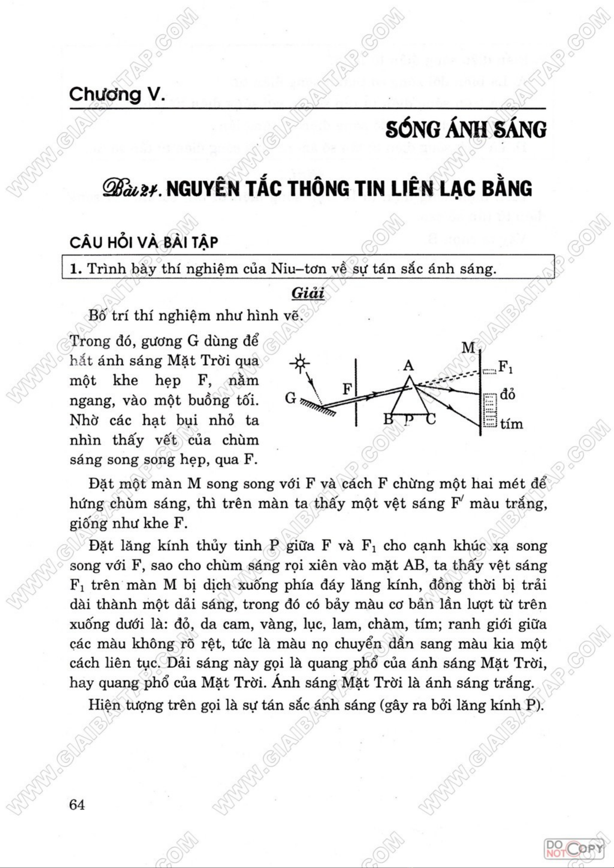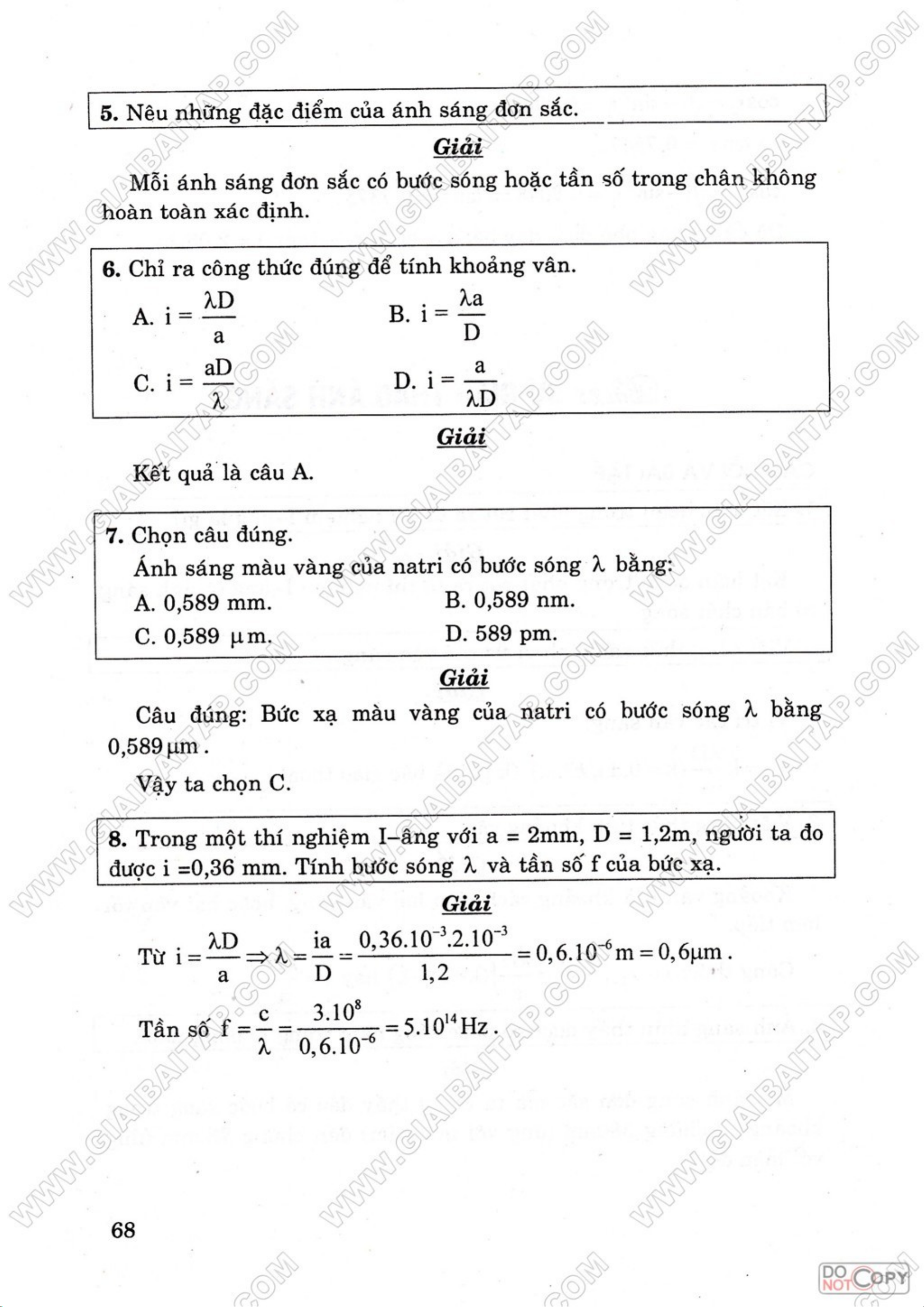 Giải bài tập Vật lý 12 cơ bản - Chương 5: Sóng ánh sáng