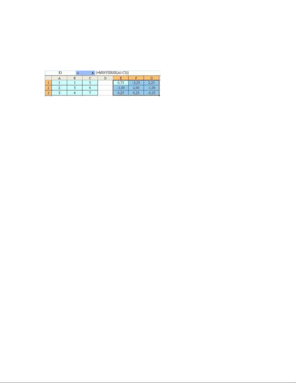 Trong Excel, ma trận nghịch đảo được tính bằng hàm mảng MINVERSE.