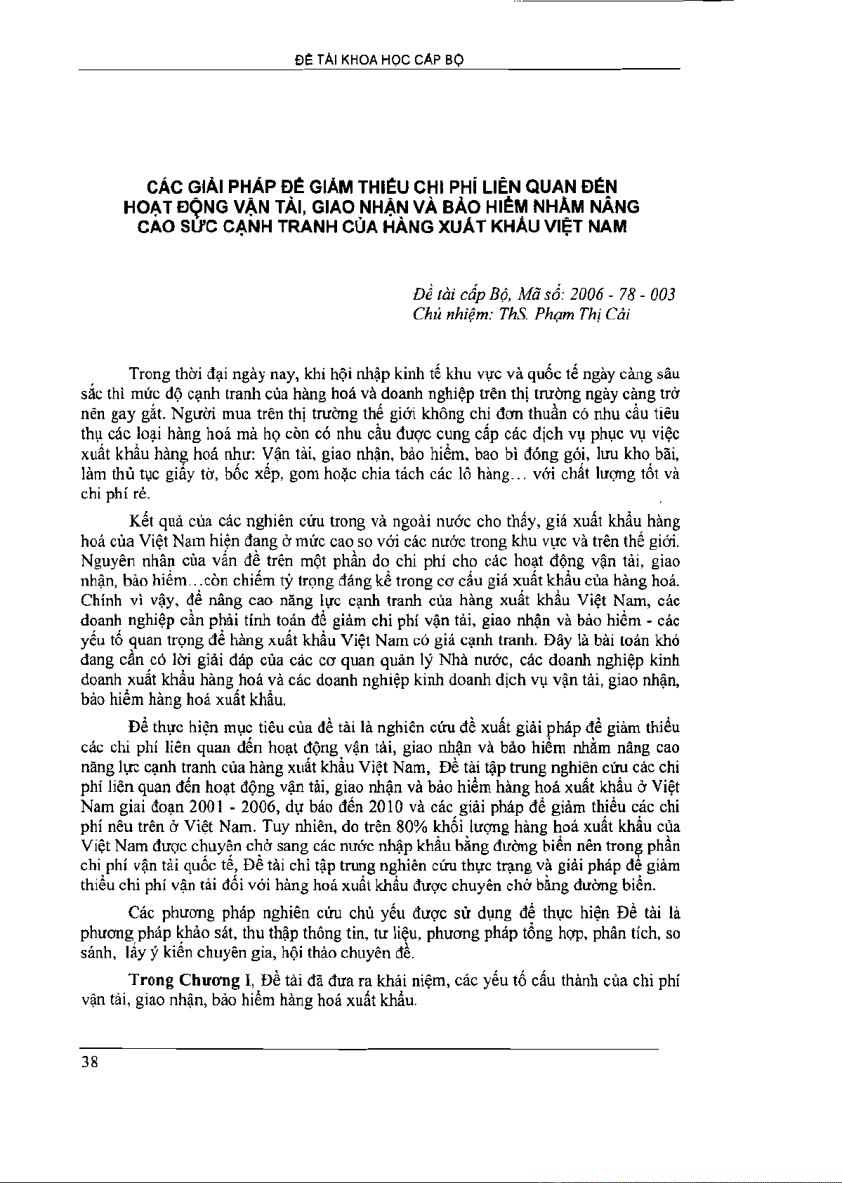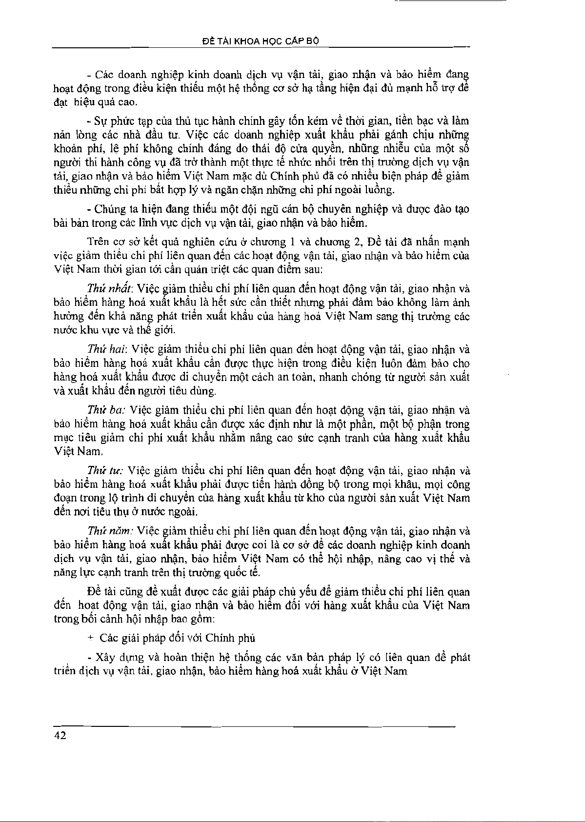Các giải pháp giảm thiểu chi phí liên quan đến hoạt động vận tải , giao nhận và bảo hiểm nhằm nâng cao sức cạnh tranh của hàng xuất khẩu vi