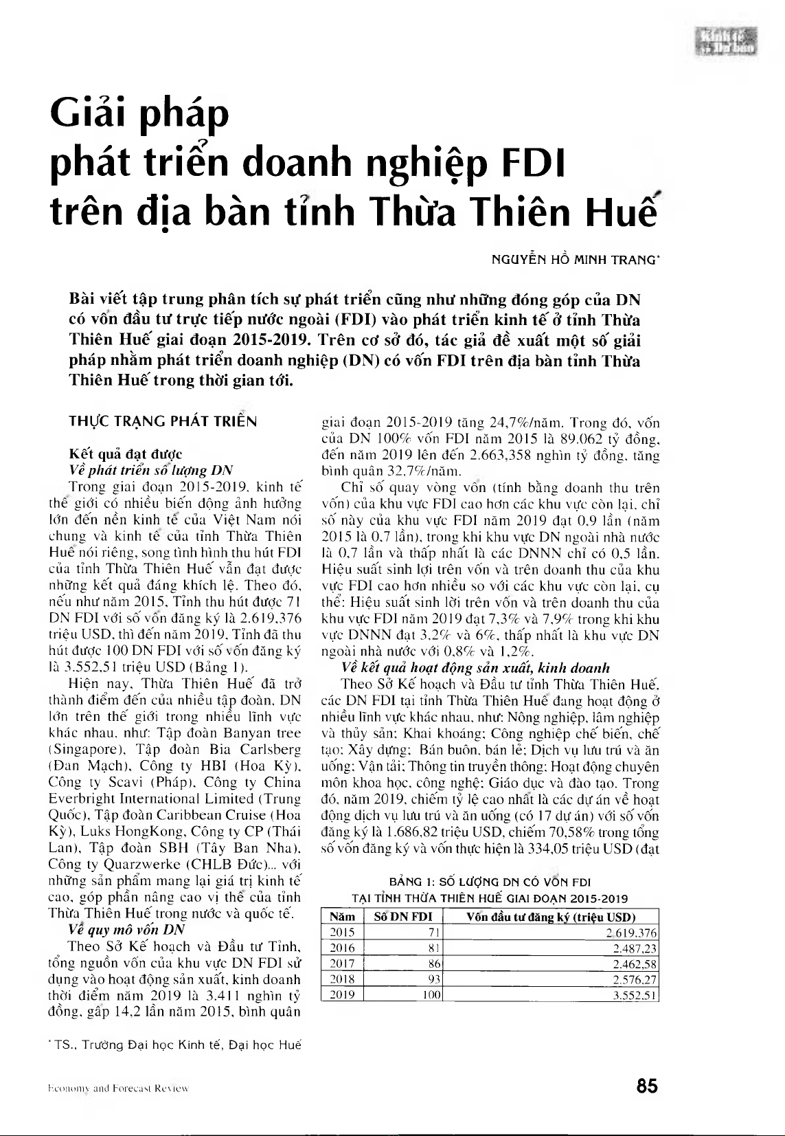 Giải pháp phát triển doanh nghiệp FDI trên địa bàn tỉnh Thừa Thiên Huế