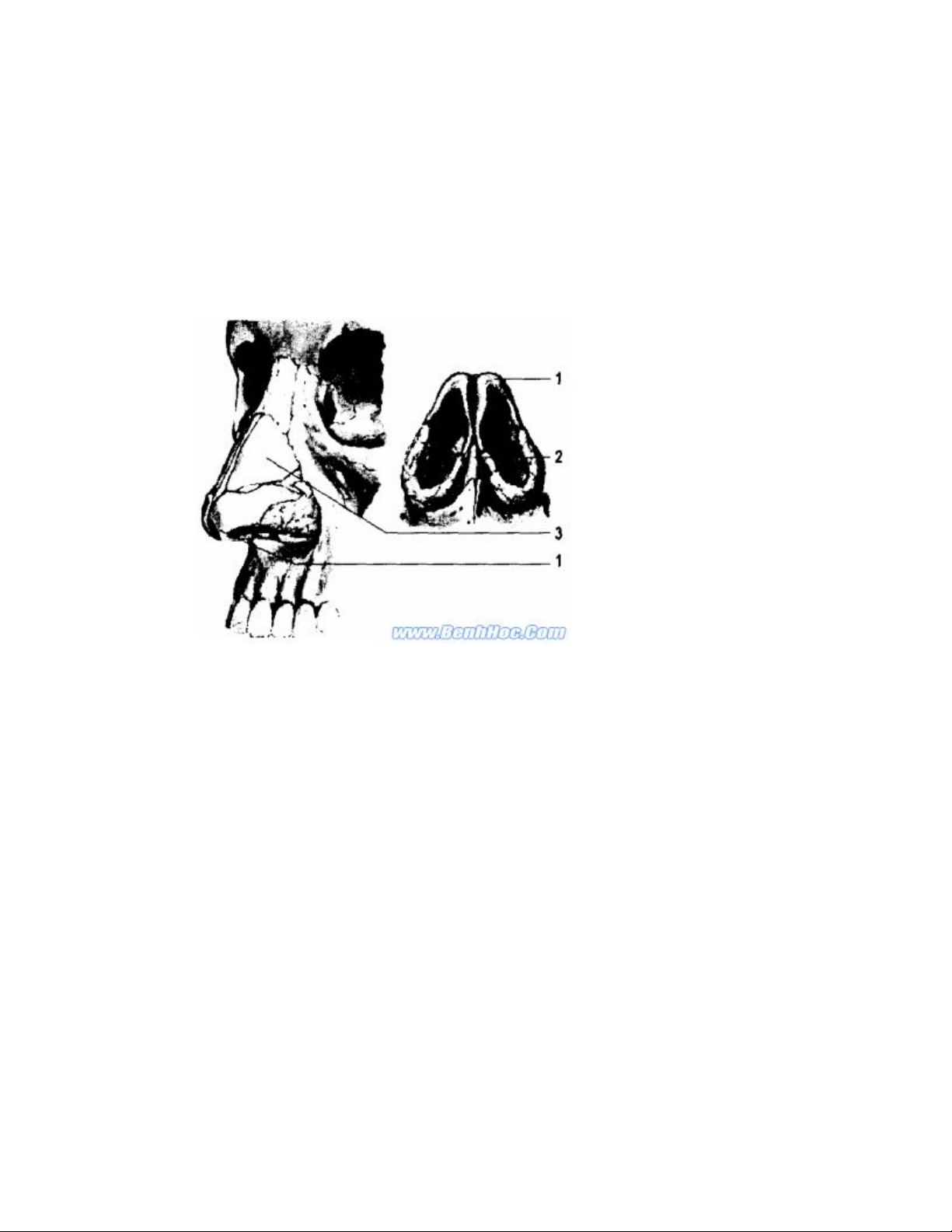giữa, mỗi hố mũi đều có 4 thành và 2 lỗ mũi trước, sau.