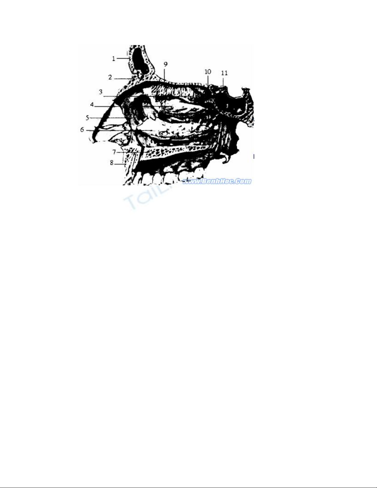 xoắn mũi giới hạn các ngách mũi, thông với các xoang xương lân cận.