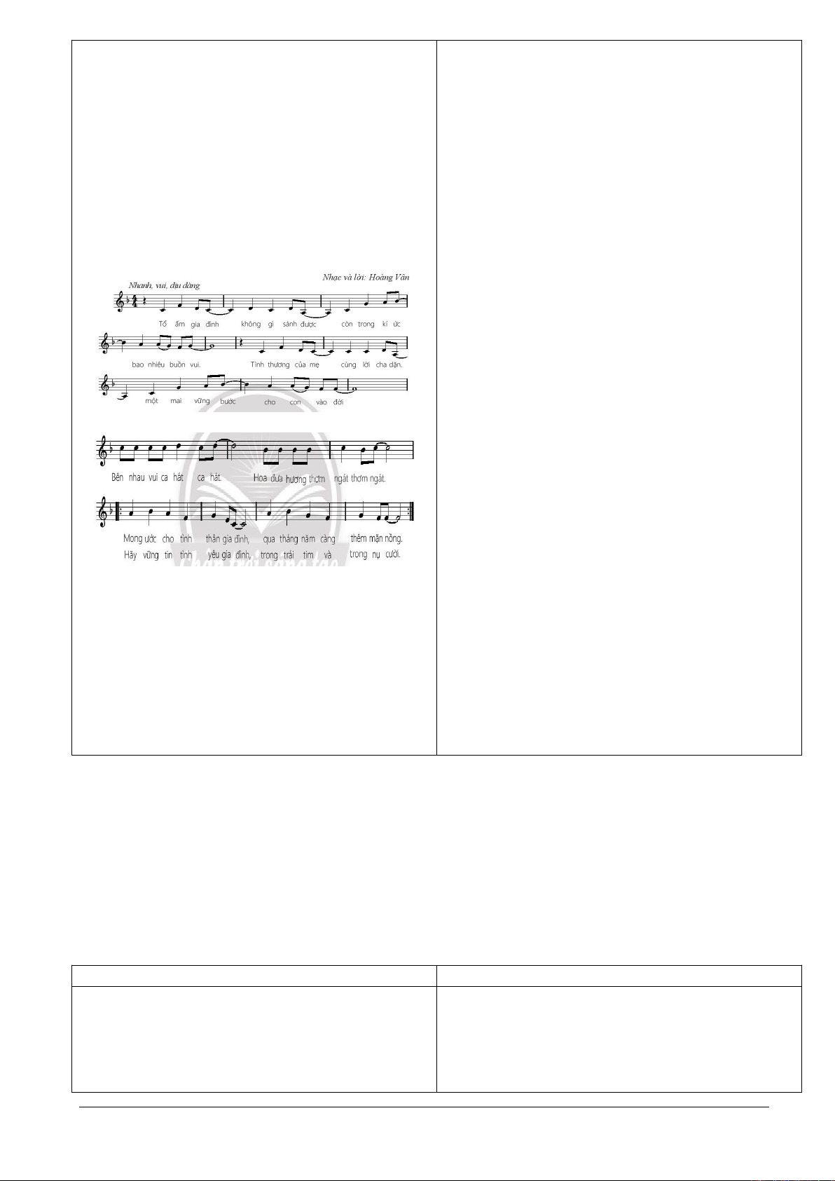- Hát đúng giai điêu, lời ca và tính chất hành khúc bài hát “Niềm vui gia đình”