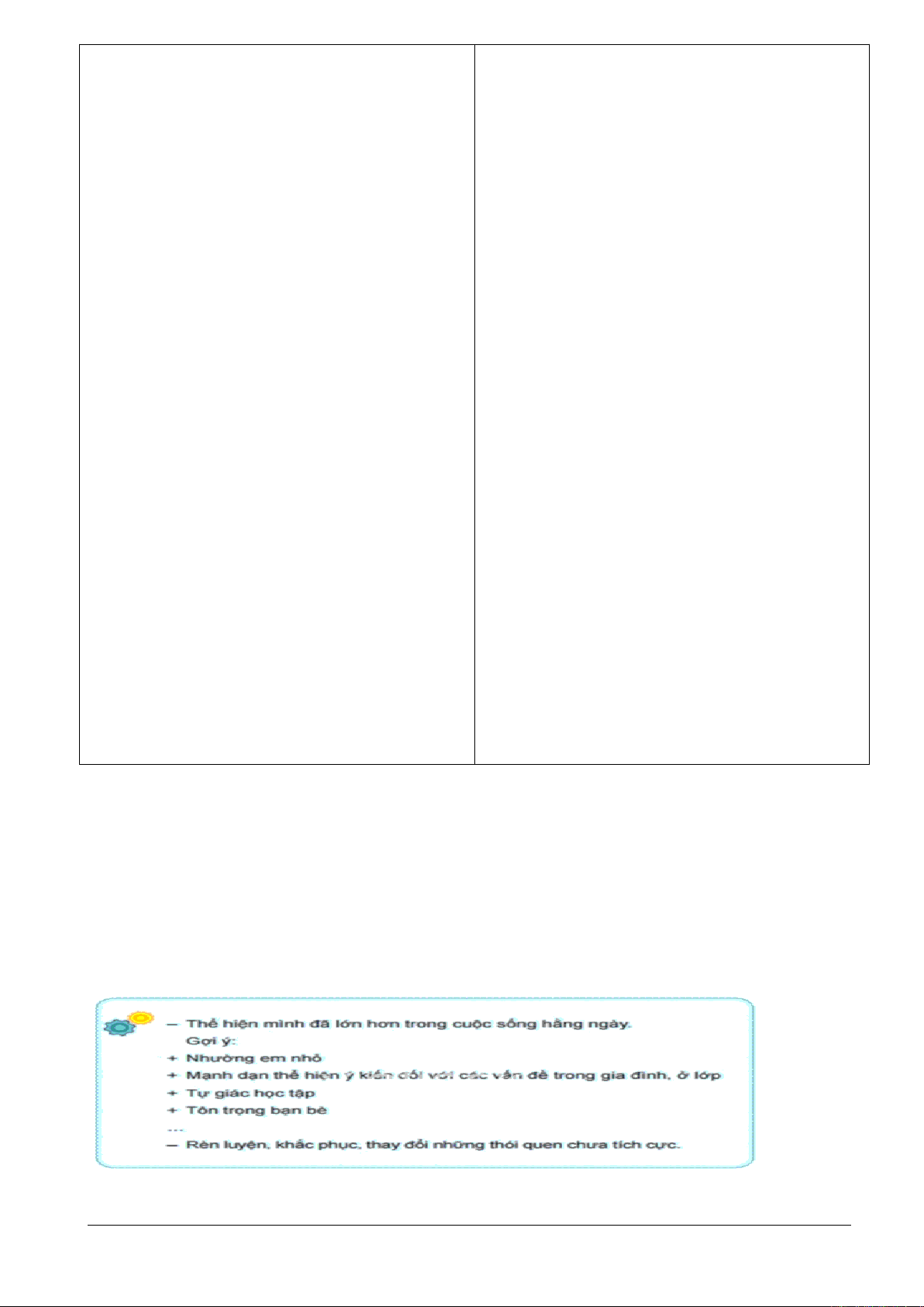- Chia sẻ được những thay đổi theo hướng đã lớn hơn của bản thân và cảm nhận được sự lớn lên