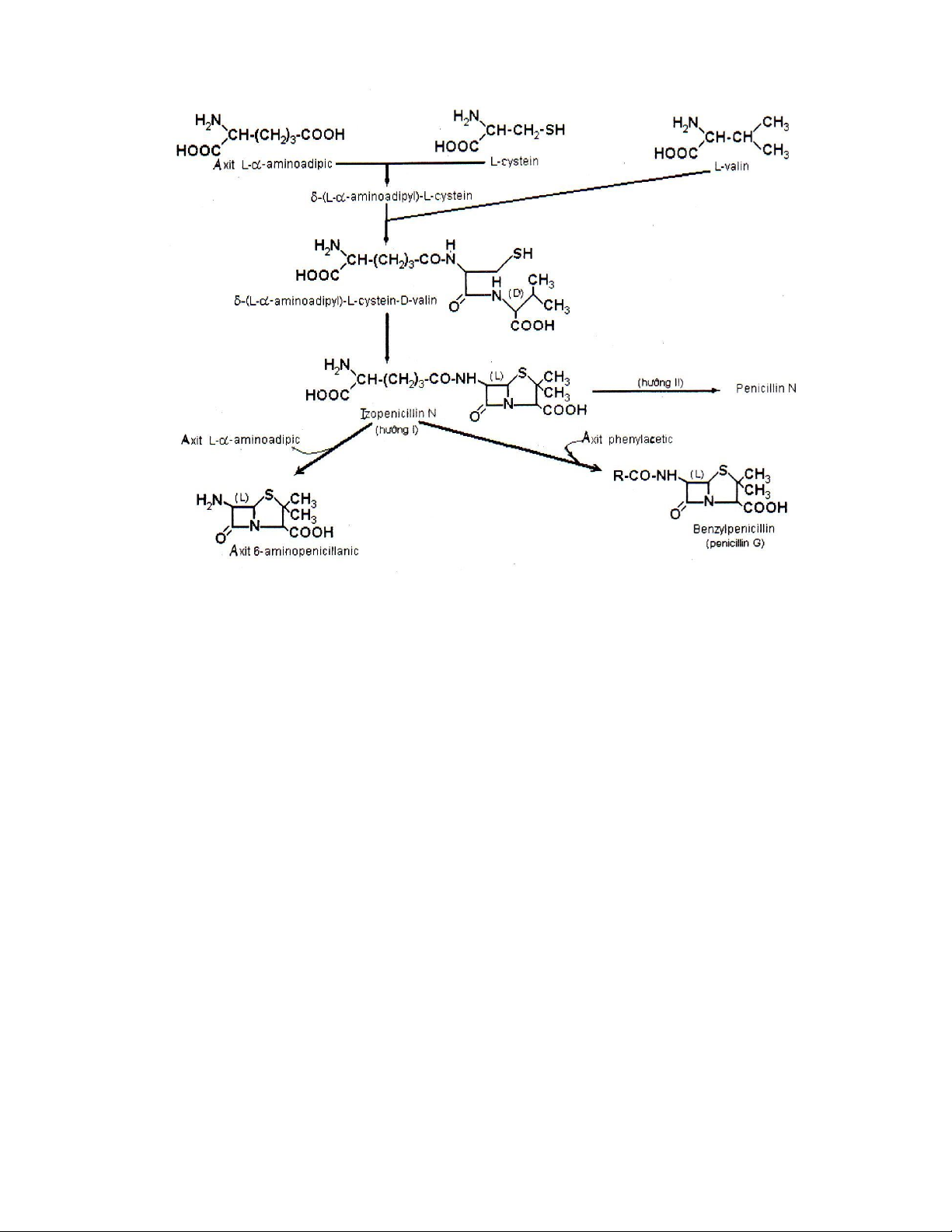 - aminoadipic dạng vòng). Như vậy, quá trình sinh tổng hợp penicillin, phụ