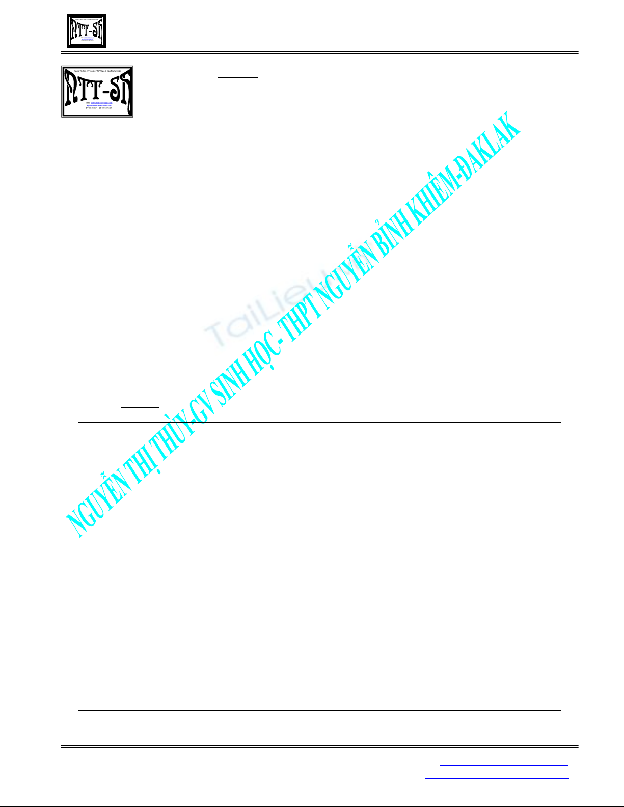 GIÁO ÁN: SINH HỌC 11 NÂNG CAO Email: nguyenthithuynbk@gmail.com