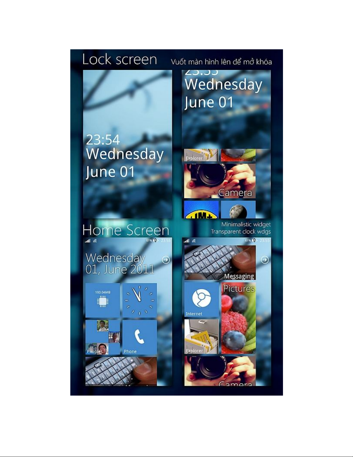 Sử dụng : Cài đặt và chọn enable WP7 lock để thay thế lockscreen mặc định, vuốt lên để mở