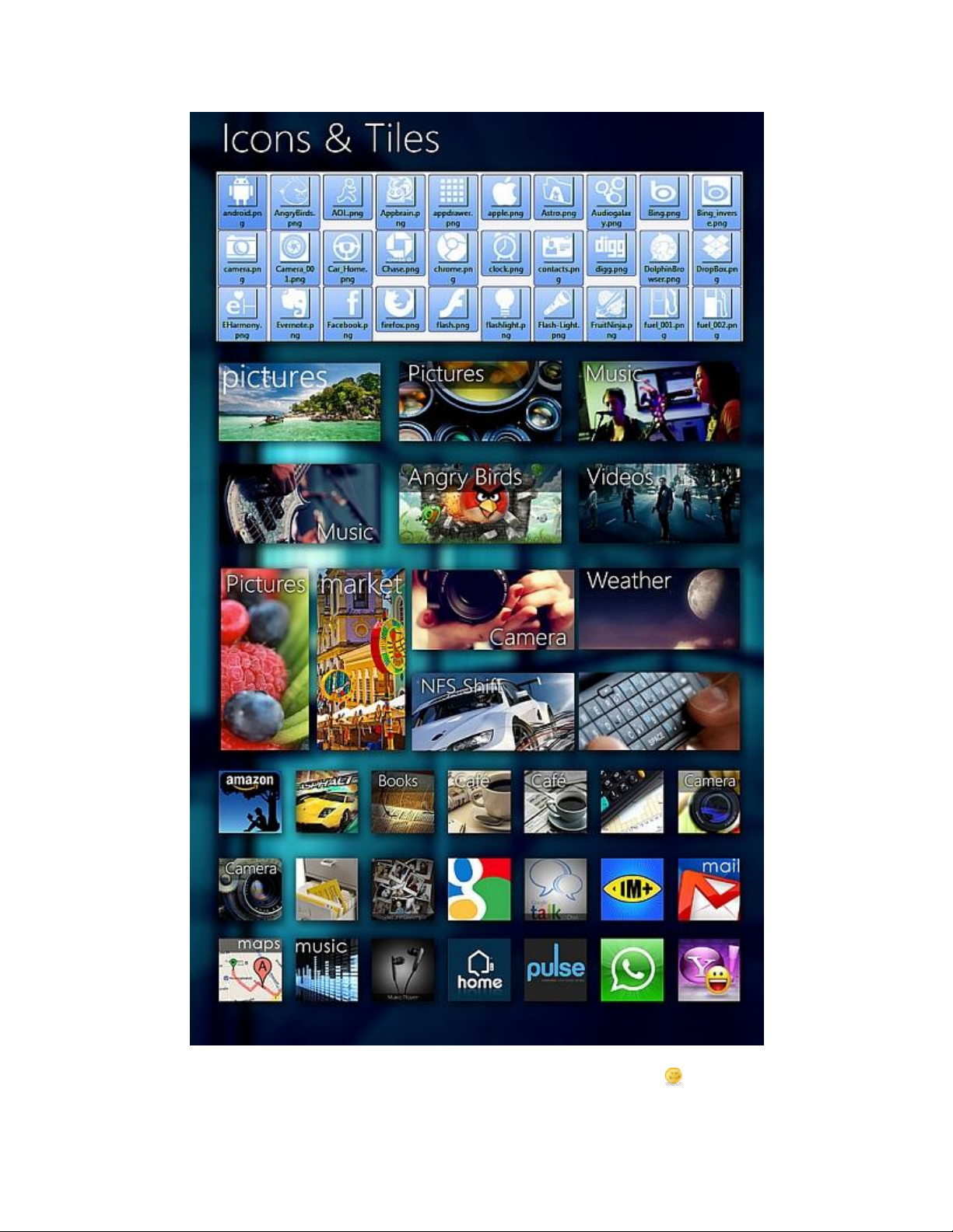 4. Các Icon trắng và các Tiles đủ kích thước : 1x1, 2x1 và 1x2. Một phần do mình tự làm bằng