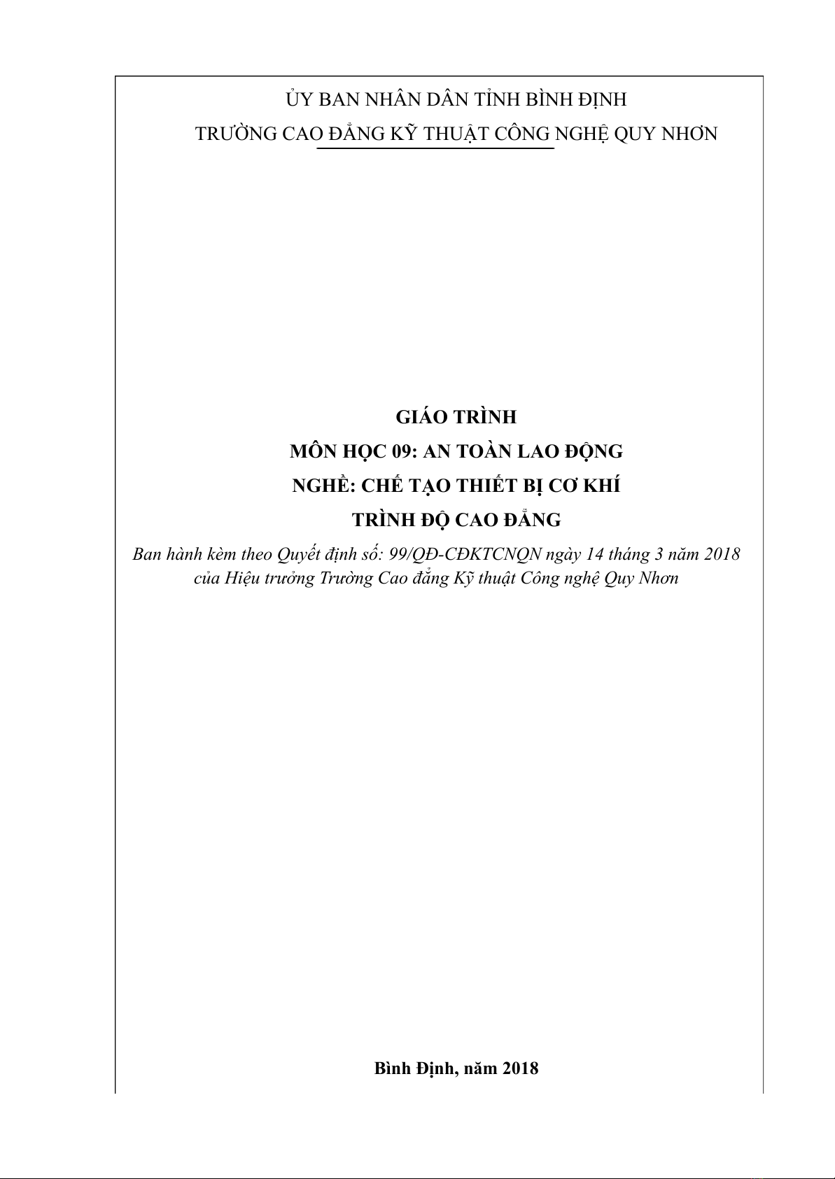 Ban hành kèm theo Quyết định số: 99/QĐ-CĐKTCNQN ngày 14 tháng 3 năm 2018
