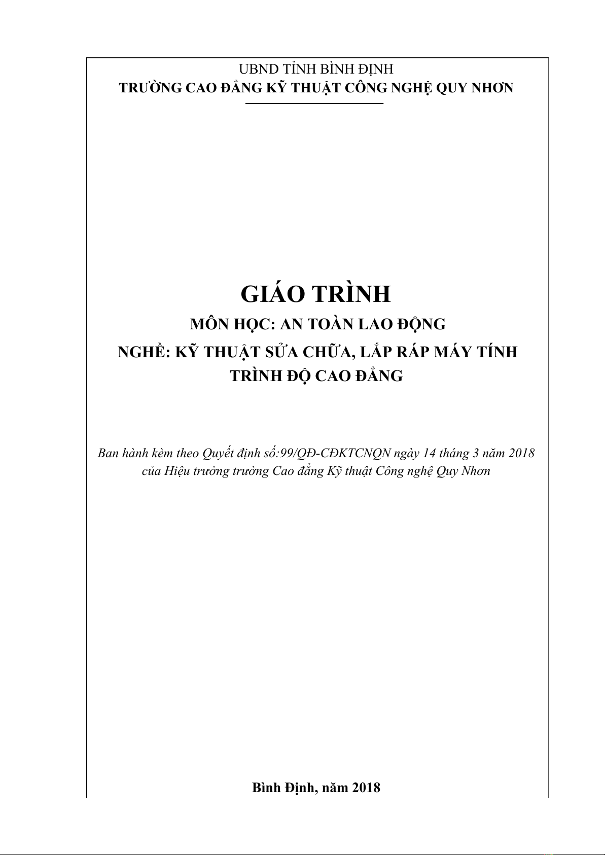 tính ở trình độ Trung cấp và Cao Đẳng, giáo trình An toàn lao động là một trong