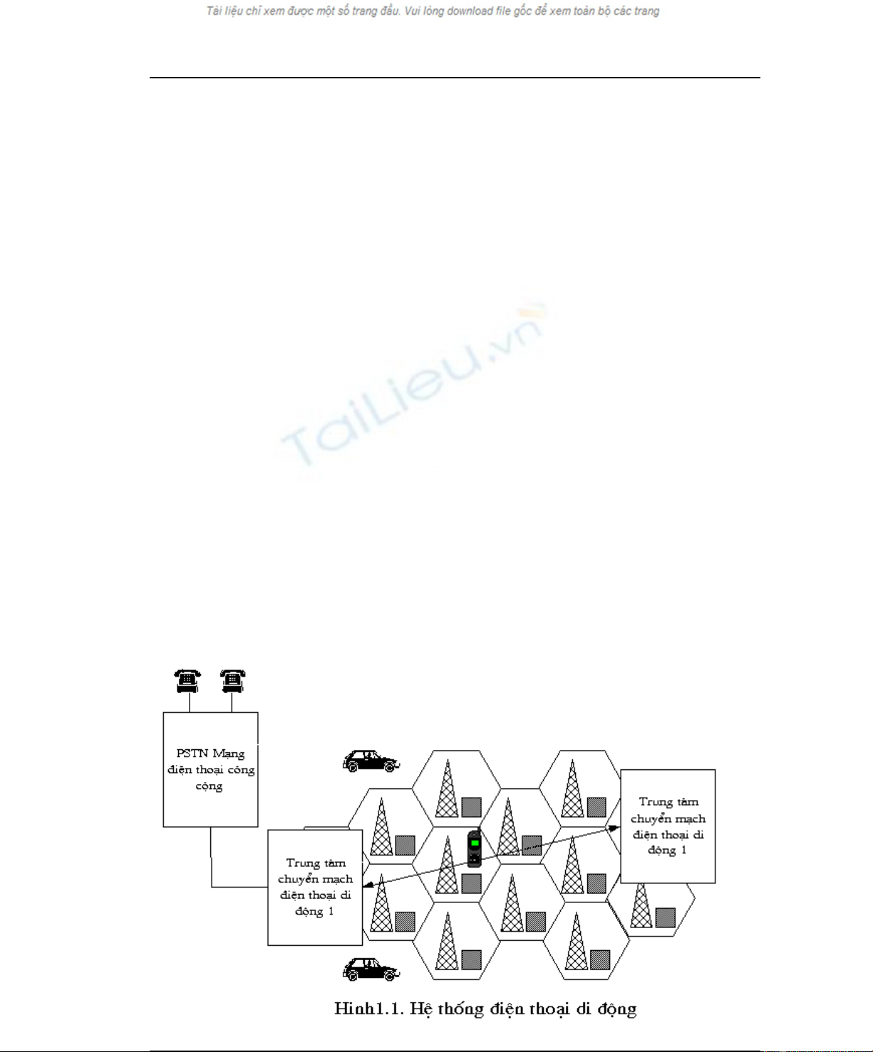 Hònh 1.1 àûa ra möåt maång àiïån thoaåi di àöång töí ong bao göìm caác traåm