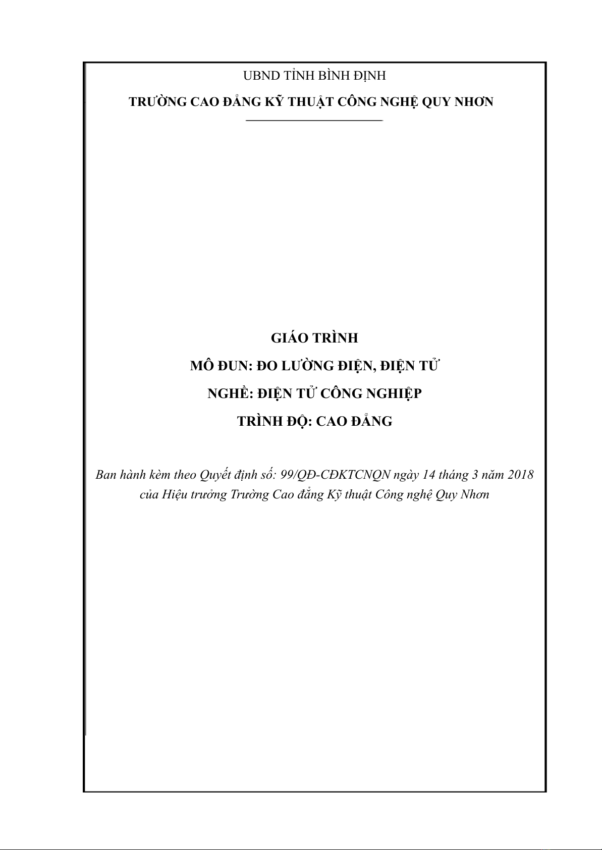 Cao Đẳng và Trung Cấp, giáo trình Đo lường điện, điện tử là một trong những giáo