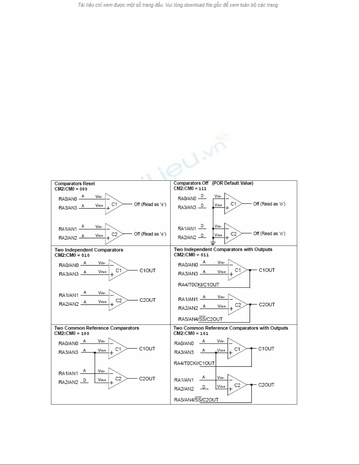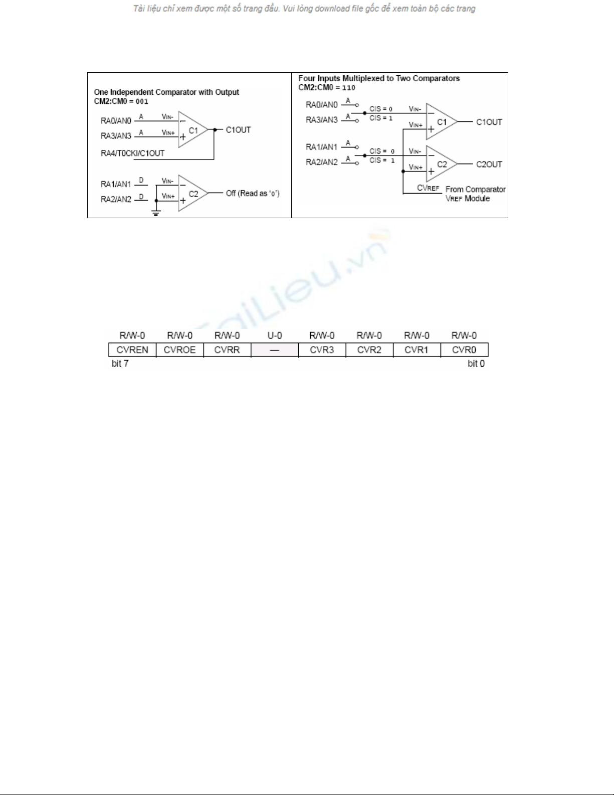 CIS = 1 khi pin VIN- cuûa C1 noái vôùi RA3/AN3 vaø