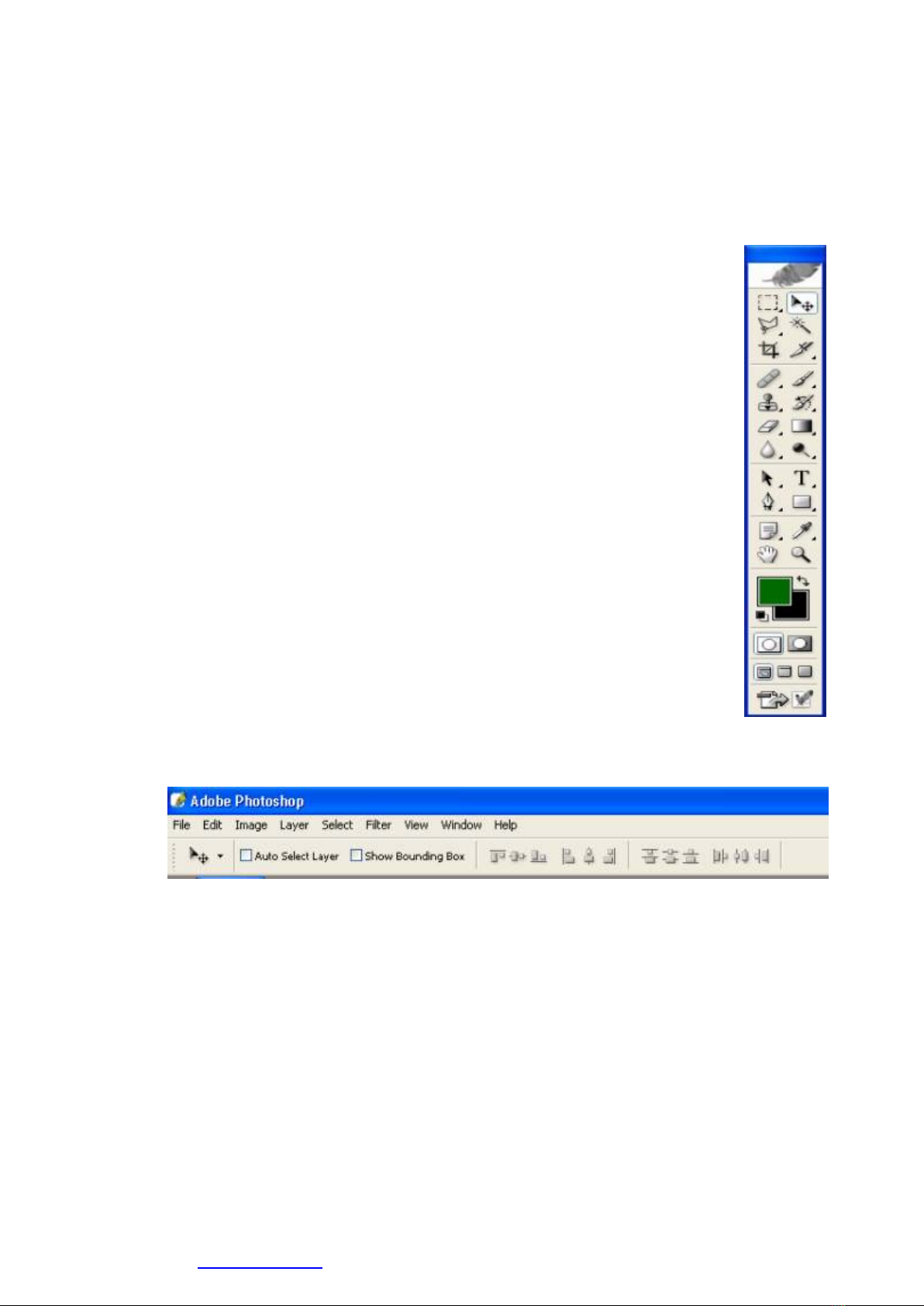 bar), hộp công cụ (Toolbox), thanh tuỳ chọn của công cụ (Tool Option