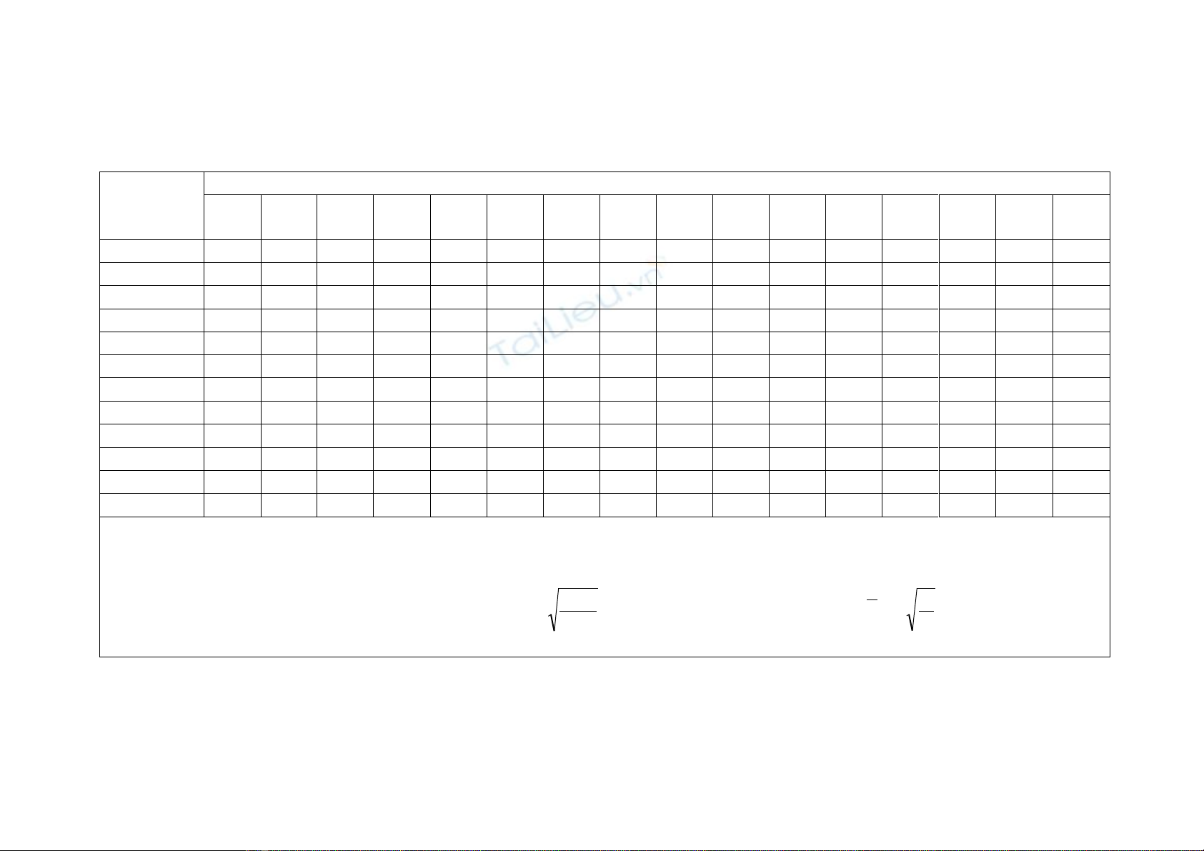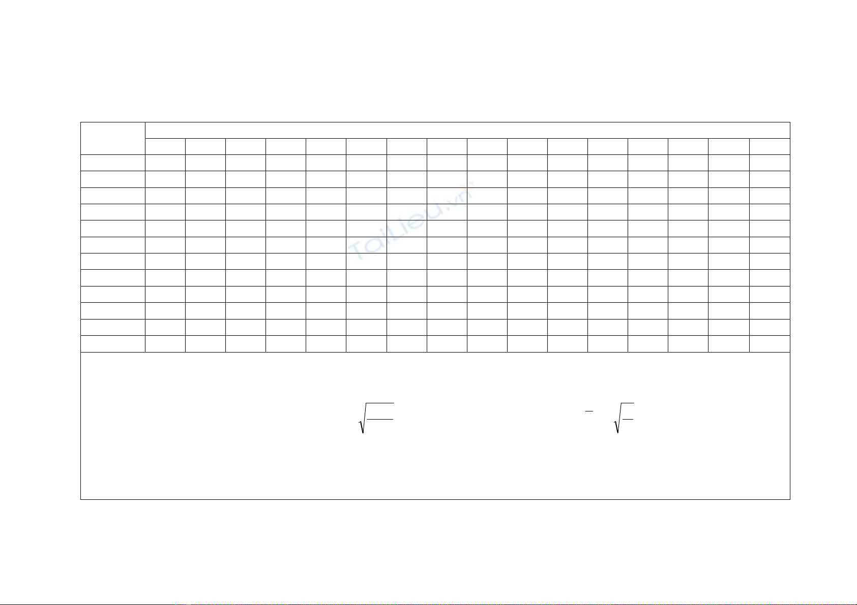 maûnh λ trong baûng ñöôïc thay theá ñoä maûnh quy öôùc λ2100