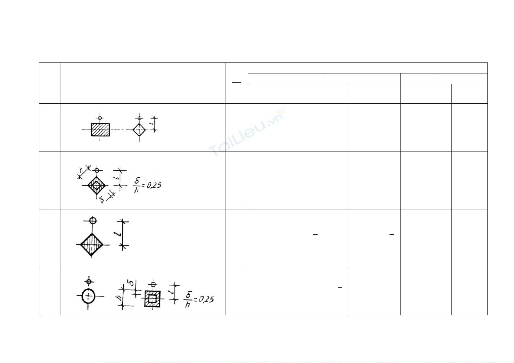 Baûng 7.8 – Heä soá aûnh höôûng cuûa hình daïng tieát dieän η.