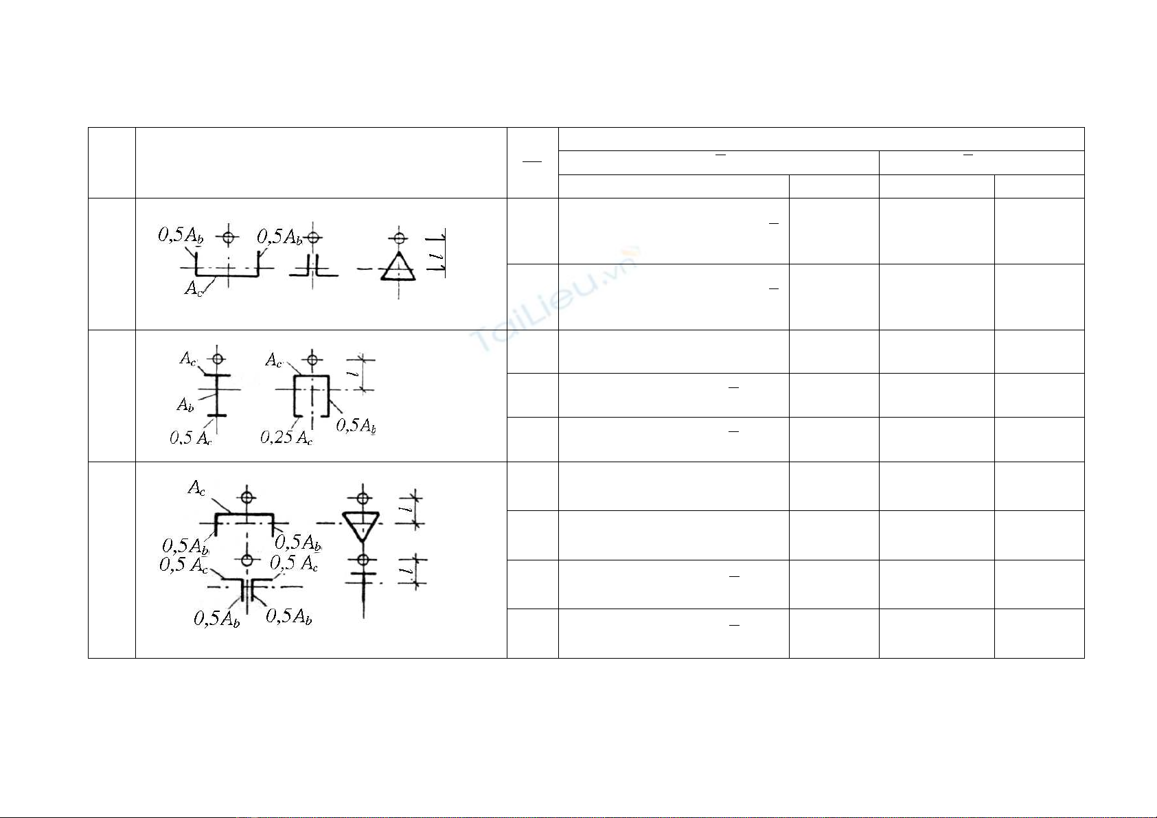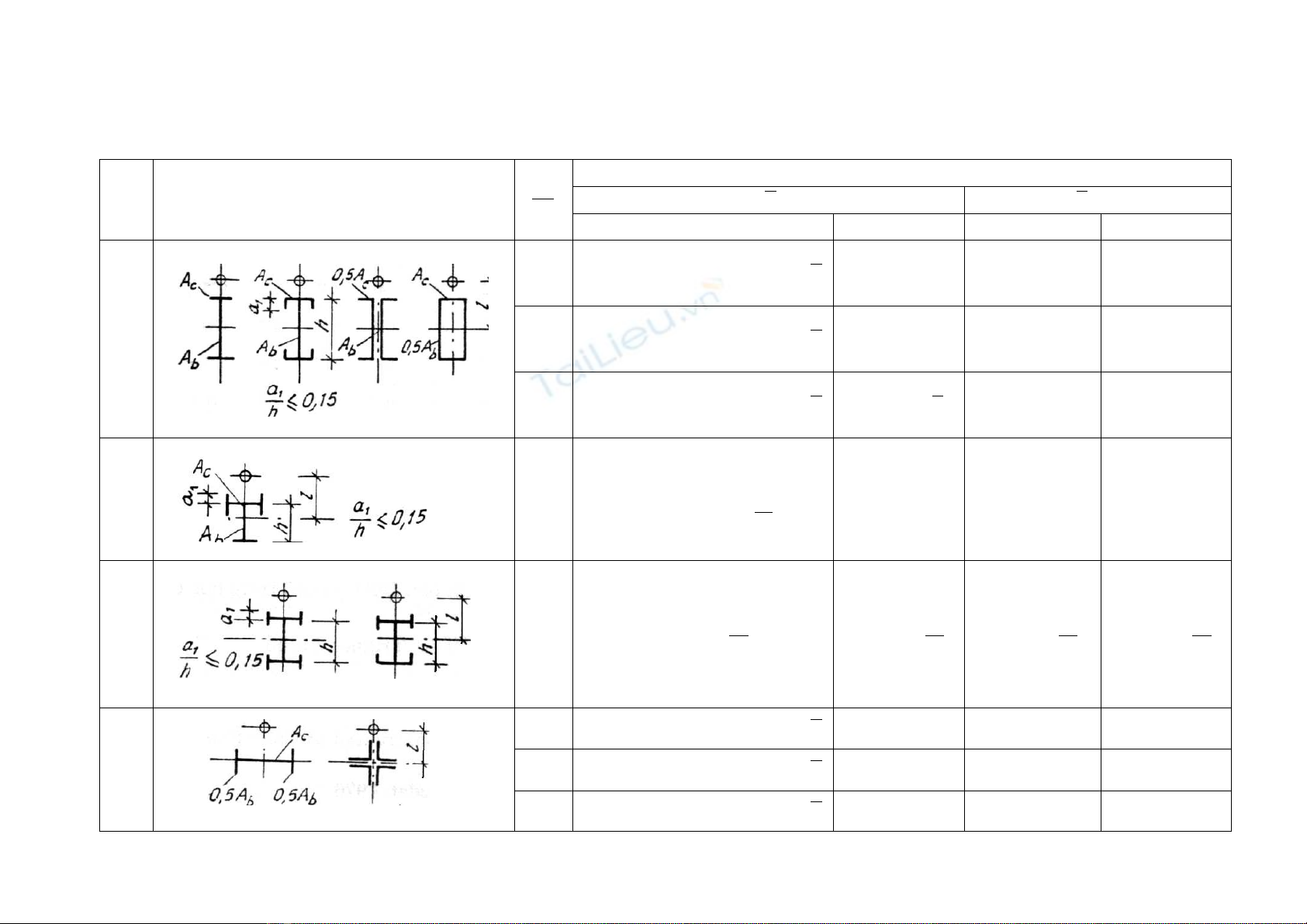 Chuù thích: 1) Vôùi caùc loaïi tieát dieän coù soá thöù töï töø 5 ÷ 7 khi tính tyû soá (Ac/Ab) khoâng tính ñeán phaàn caùnh ñaët thaúng ñöùng.