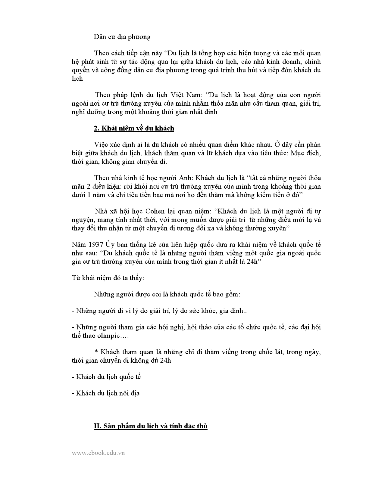 Khái niệm về du lịch có nhiều cách hiểu do được tiếp cận bằng nhiều cách hiểu khác nhau, sau đây là một số quan niệm về du lịch theo các cách tiếp cận phổ biến. Du lịch là một hiện tượng: trước thế kỷ thứ XIX đến tận đầu thế kỷ XX du lịc hầu như vẫn được coi là đặc quyền của tầng lớp giàu có, quý tộc va người ta chỉ coi đây như một hiện tượng cá biệt trong đời sống kinh tế - xã hội...