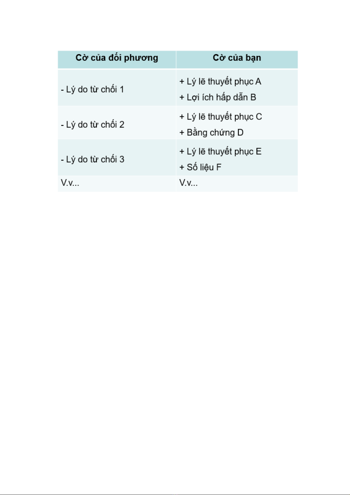 - Khi ta thuyết phục, đối phương sẽ đưa ra những lý do để từ chối, để thoái