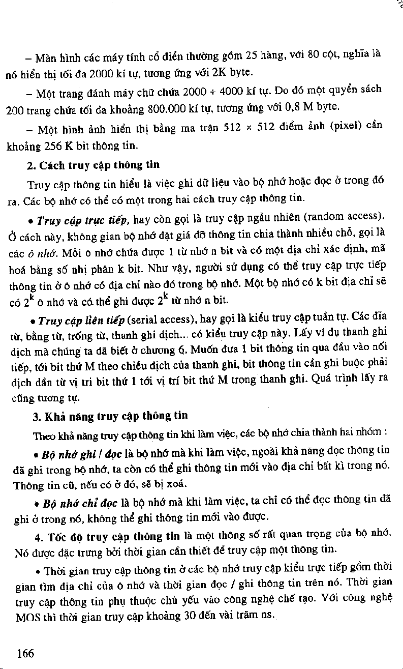 1. Dung lượng bộ nhớ là số bit thông tin tối đa có thể lưu giữ trong nó. Dung lượng cũng có thể biễu thị bằng số từ nhớ n bit. Từ nhớ n bit là số bit (n) thông tin mà ta có thể đọc hoặc ghi đồng thời vào bộ nhớ.