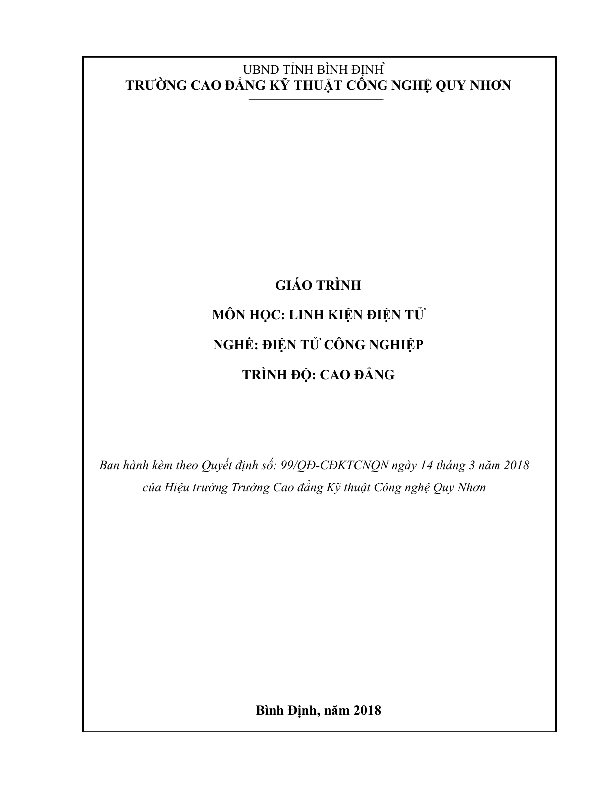 Đẳng và Trung Cấp , giáo trình “Linh kiện điện tử” là một trong những giáo trình môn