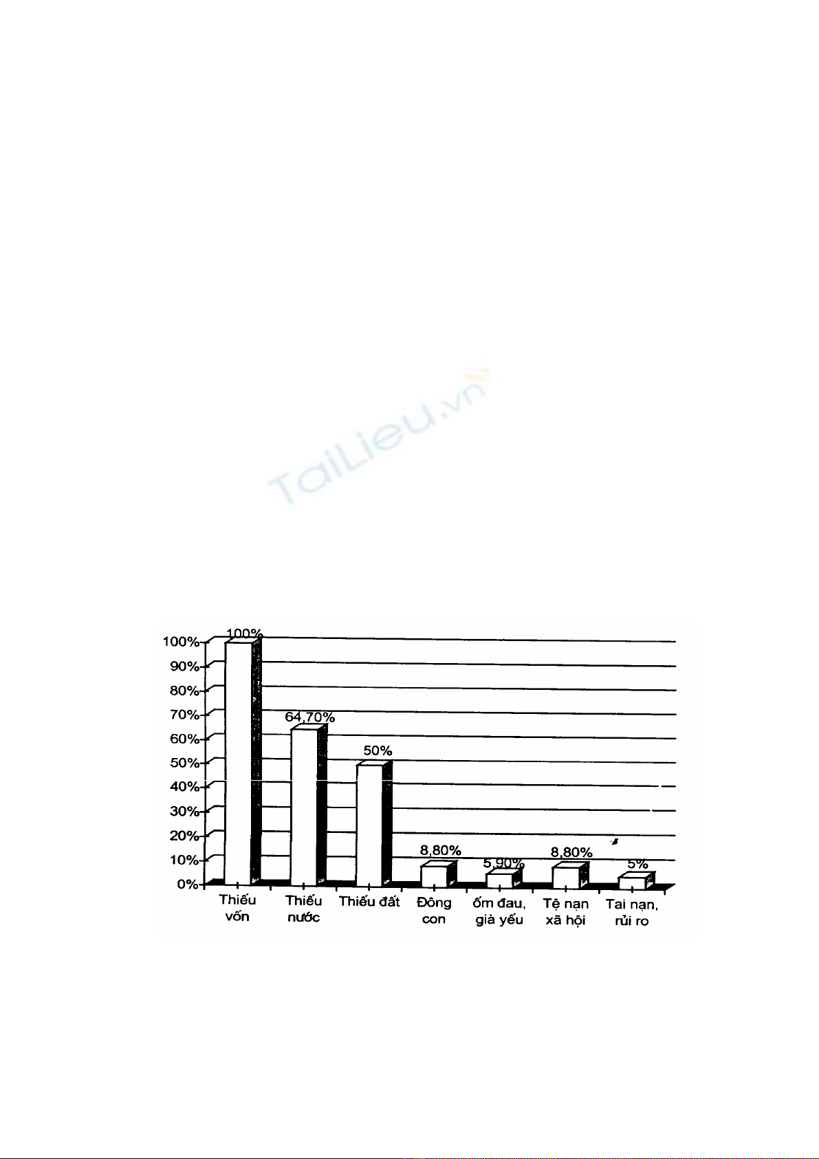 thiếu nước tưới (64,7%) và thiếu đất canh tác (50%). Điều tra bằng bảng câu hỏi chặt