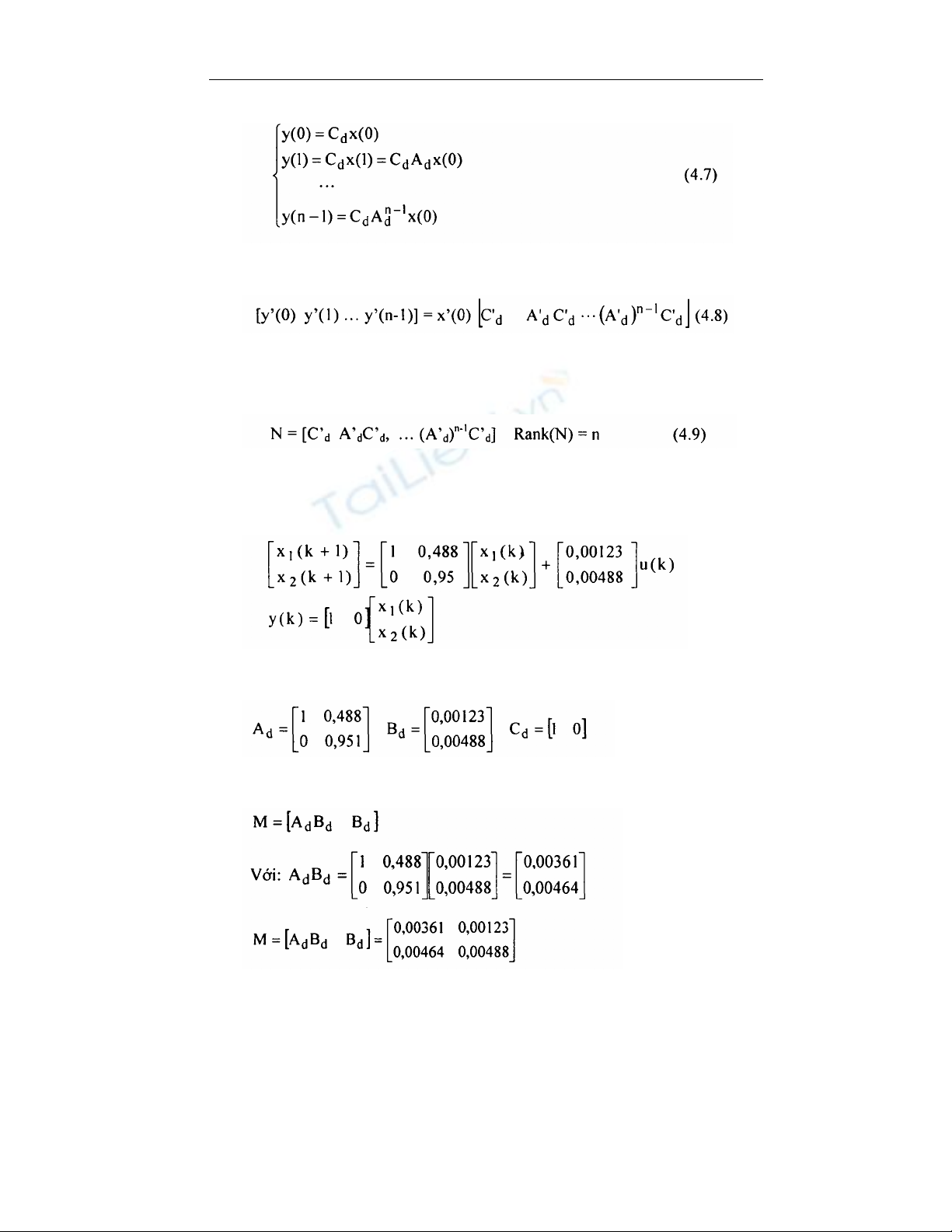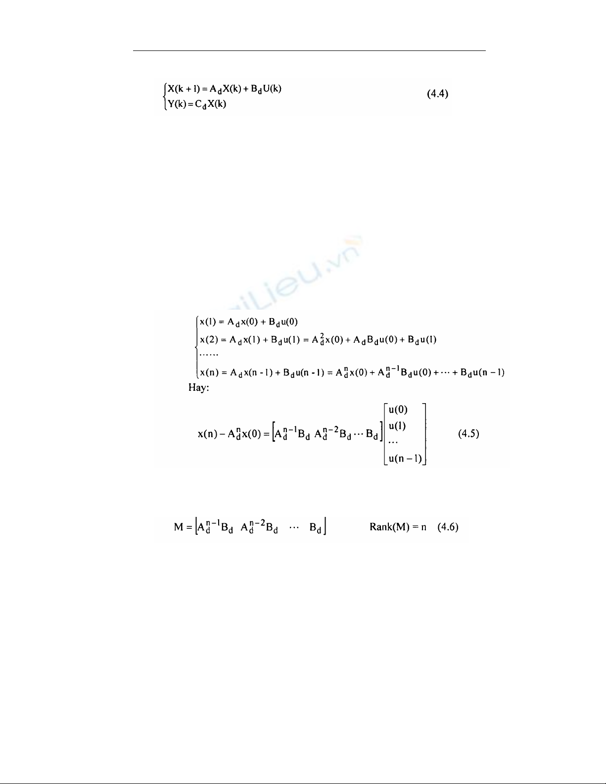 được ở đầu ra y(k) ta có thể xác định được trạng thái x(k) của nó.
