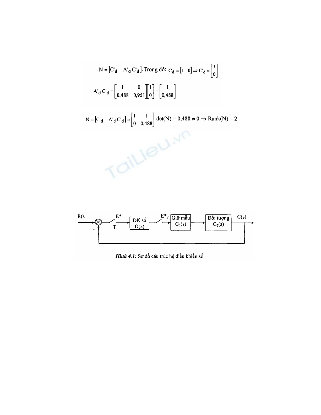 Ta thấy: det(M) ≠ 0 ⇒ Rank(M) = 2. Vậy, hệ thống điều khiển được