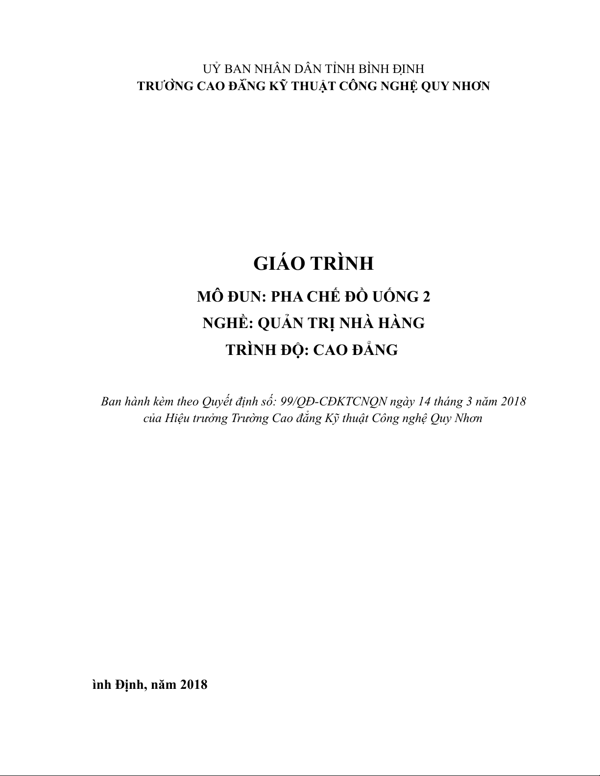 - Tính chất: Là mô đun trang bị cho người học kiến thức, kỹ năng pha chế đồ uống
