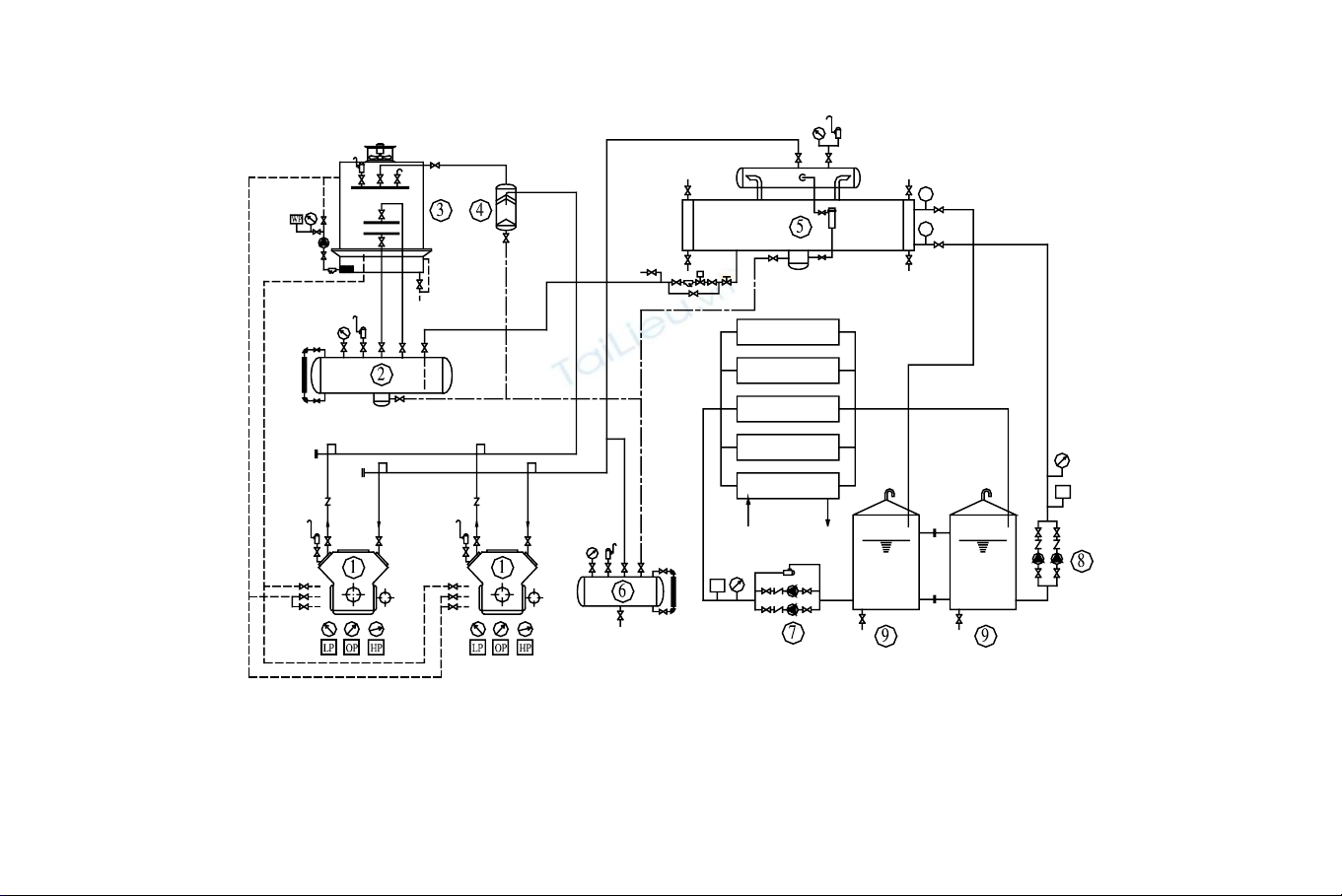 B¬m glycol ®Õn c¸c hé tiªu thô; 8- B¬m glycol tuÇn hoµn; 9- Thïng glycol