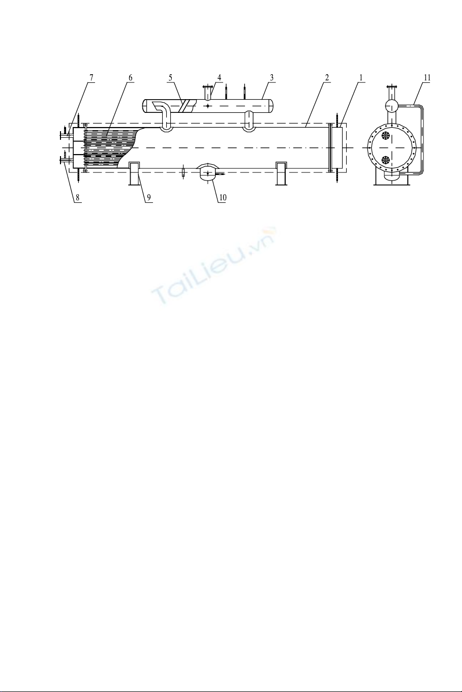 6- èng trao ®æi nhiÖt; 7- N−íc ra; 8- N−íc vµo; 9- Ch©n b×nh; 10- Rèn b×nh;
