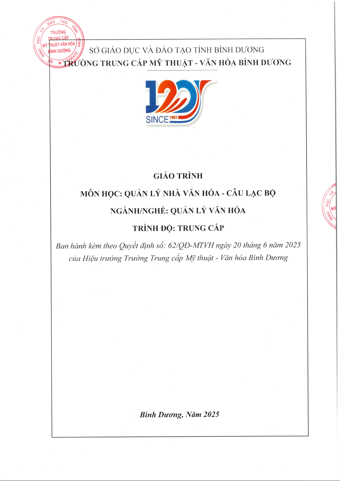 Đối tượng độc giả mục tiêu là sinh viên, học viên ngành Quản lý Văn hóa ở trình độ Trung cấp và các cán bộ, chuyên viên đang làm việc hoặc có định hướng công tác tại các thiết chế văn hóa cơ sở như Nhà Văn hóa và Câu lạc bộ.