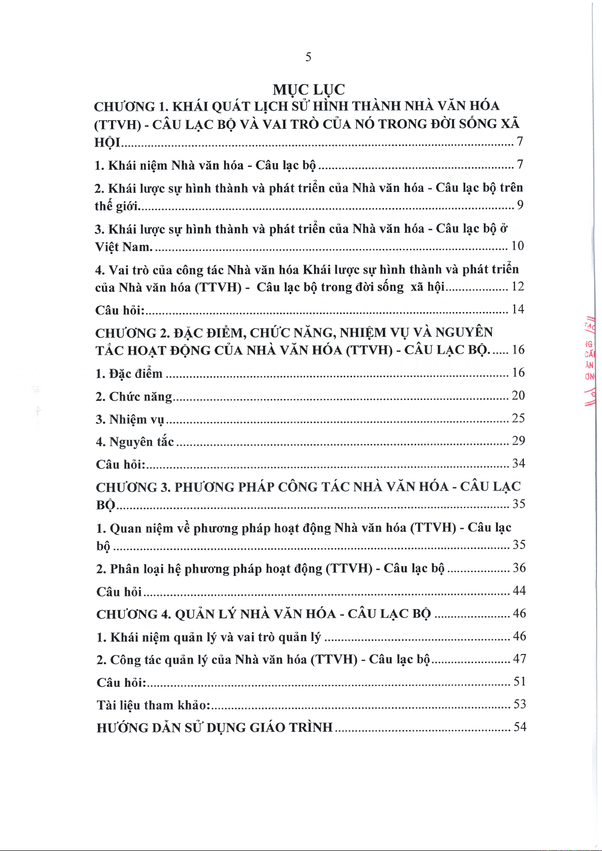 Giáo trình "Quản lý Nhà Văn hóa - Câu lạc bộ" cung cấp một cái nhìn toàn diện về lịch sử hình thành, đặc điểm, chức năng và nguyên tắc hoạt động của các thiết chế văn hóa quan trọng này, cả trên thế giới và đặc biệt là tại Việt Nam. Nó định nghĩa rõ ràng Nhà Văn hóa là nơi tổ chức hoạt động văn hóa – nghệ thuật, giáo dục và thông tin, trong khi Câu lạc bộ là hình thức tổ chức tự nguyện theo sở thích, đóng vai trò như “tế bào hoạt động” của Nhà Văn hóa. Tầm quan trọng của chúng được nhấn mạnh qua vai trò đa diện: nâng cao đời sống tinh thần, là công cụ giáo dục pháp luật, tuyên truyền tư tưởng, và cốt yếu trong bảo tồn và phát huy bản sắc văn hóa dân tộc. Ngoài ra, giáo trình cũng chỉ ra vai trò của các thiết chế này trong xây dựng nông thôn mới và phát triển cá nhân, kết nối cộng đồng. Về phương pháp quản lý và vận hành, tài liệu giới thiệu thiết kế đa năng để tối ưu không gian, cách tổ chức hoạt động hiệu quả trong thời gian rỗi, cùng với nguyên tắc tự nguyện và xã hội hóa để khuyến khích sự tham gia rộng rãi và bền vững. Nội dung này giúp học viên nắm vững kiến thức và kỹ năng để quản lý Văn hóa và tổ chức hoạt động văn hóa một cách hiệu quả, phù hợp với thực tiễn địa phương.