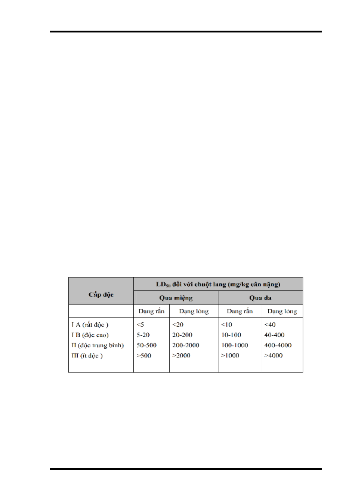 Dựa vào giá trị liều gây chết 50% số động vật thực nghiệm (LD50). Tổ chức Y tế thế