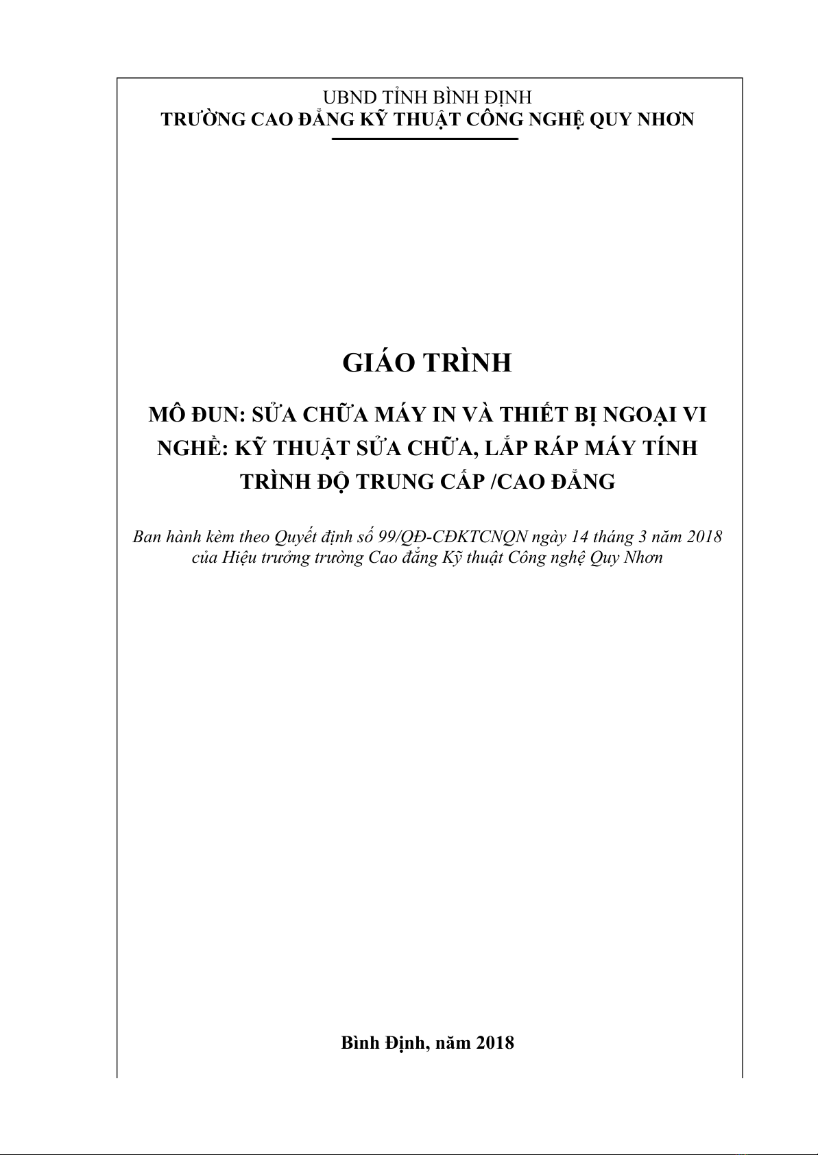 ráp máy tính ở trình độ Cao Đẳng và Trung Cấp, giáo trình “Sửa chữa máy in